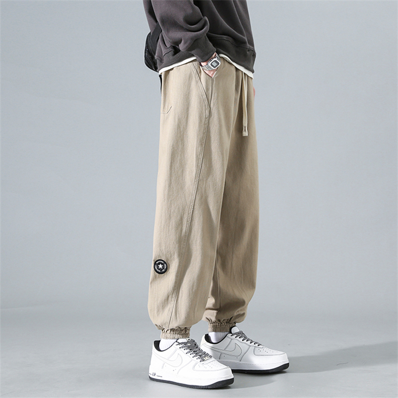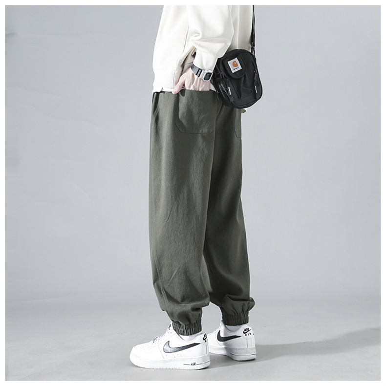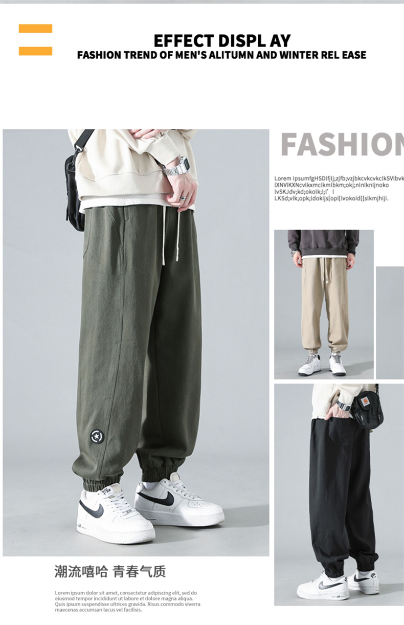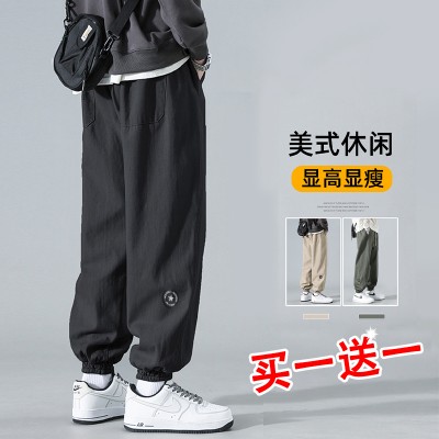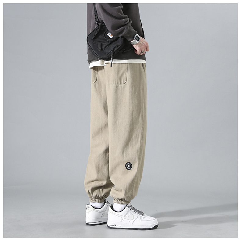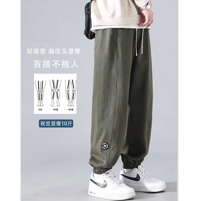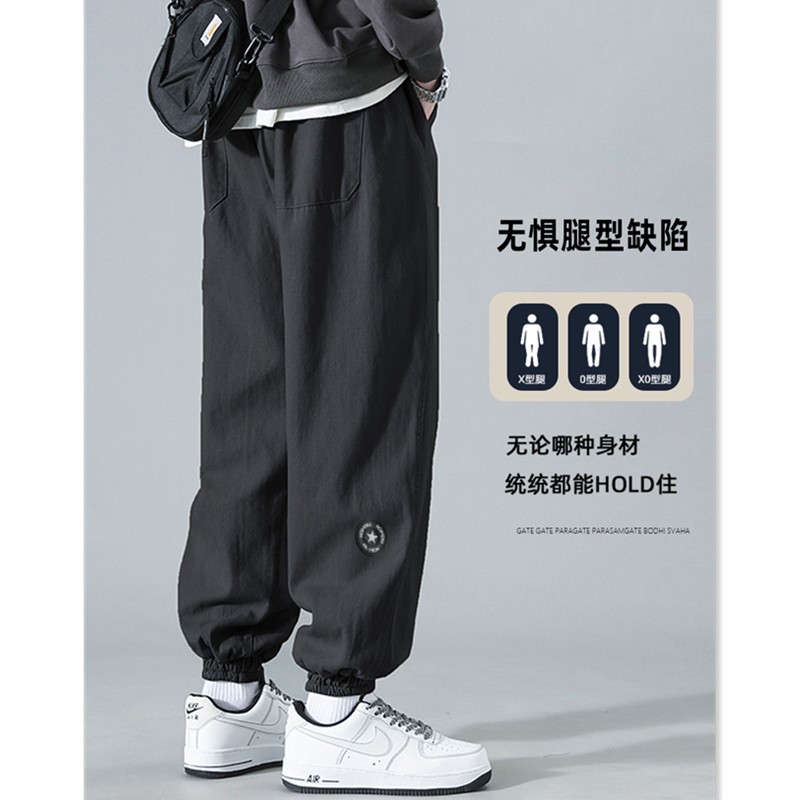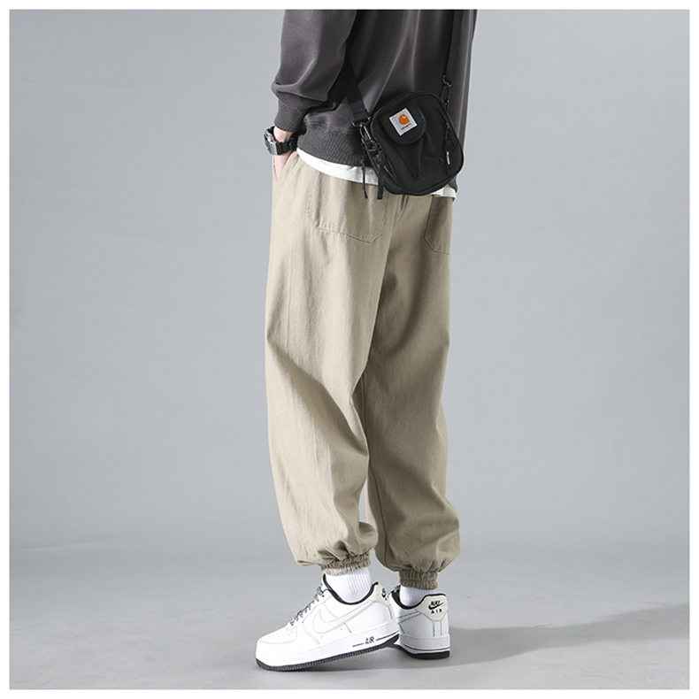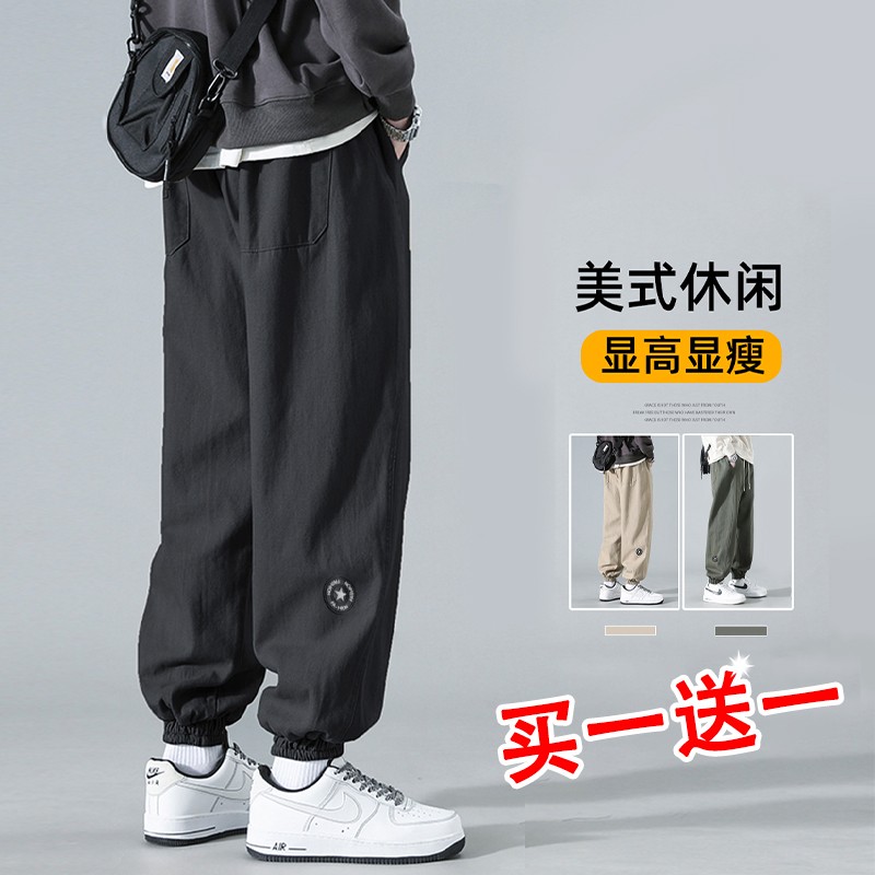 | 产品名称 : | 裤子男春秋季港风男装宽松束脚运动长裤夏天复古大码工装休闲裤子 |