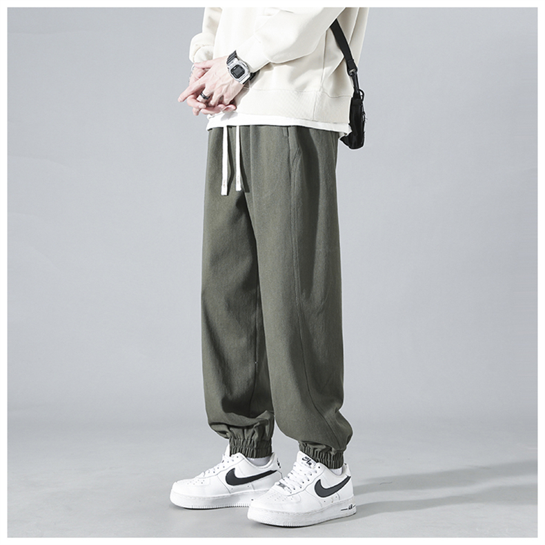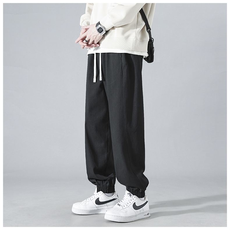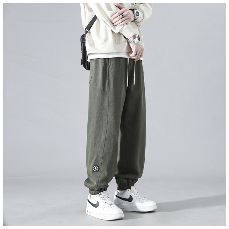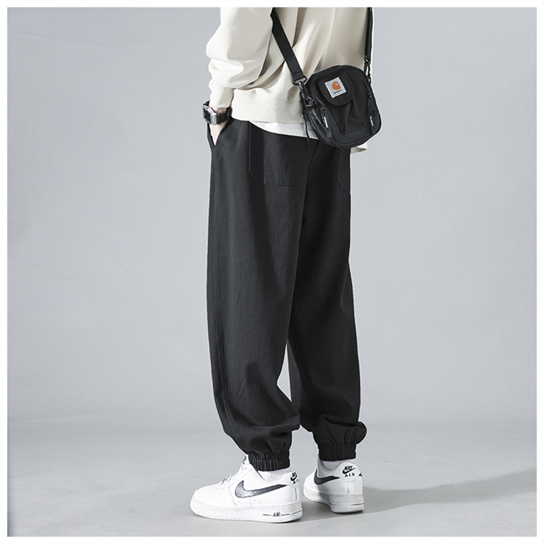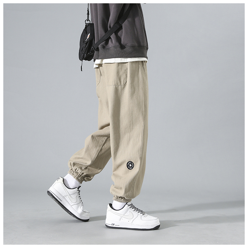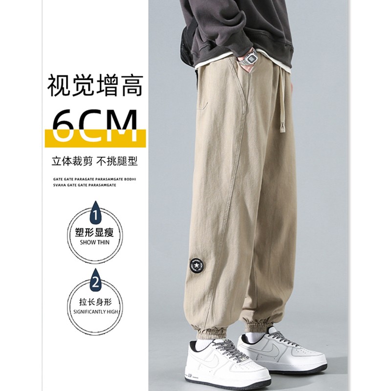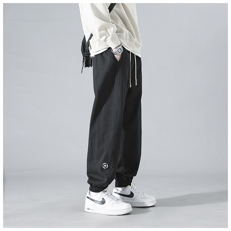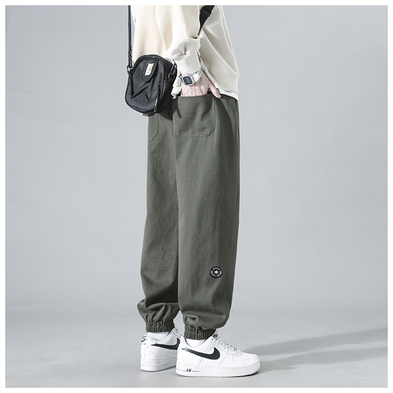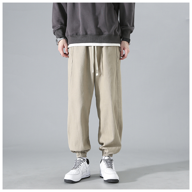 | 产品名称 : | 裤子男春秋季港风男装宽松束脚运动长裤夏天复古大码工装休闲裤子 |