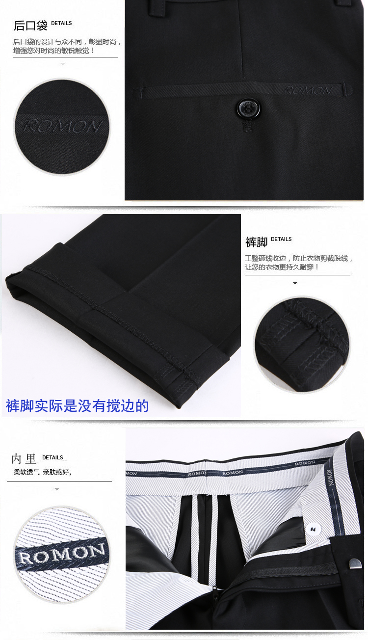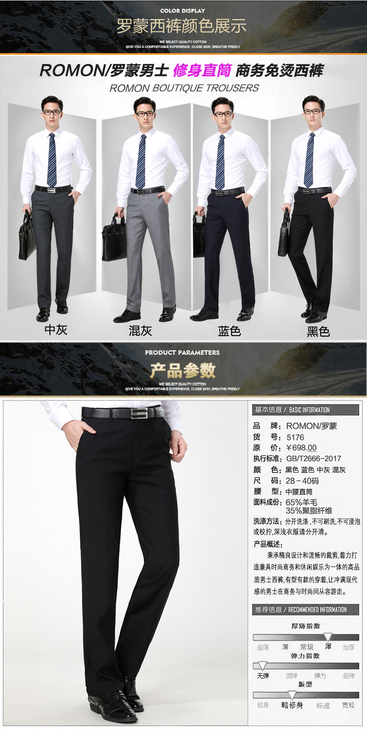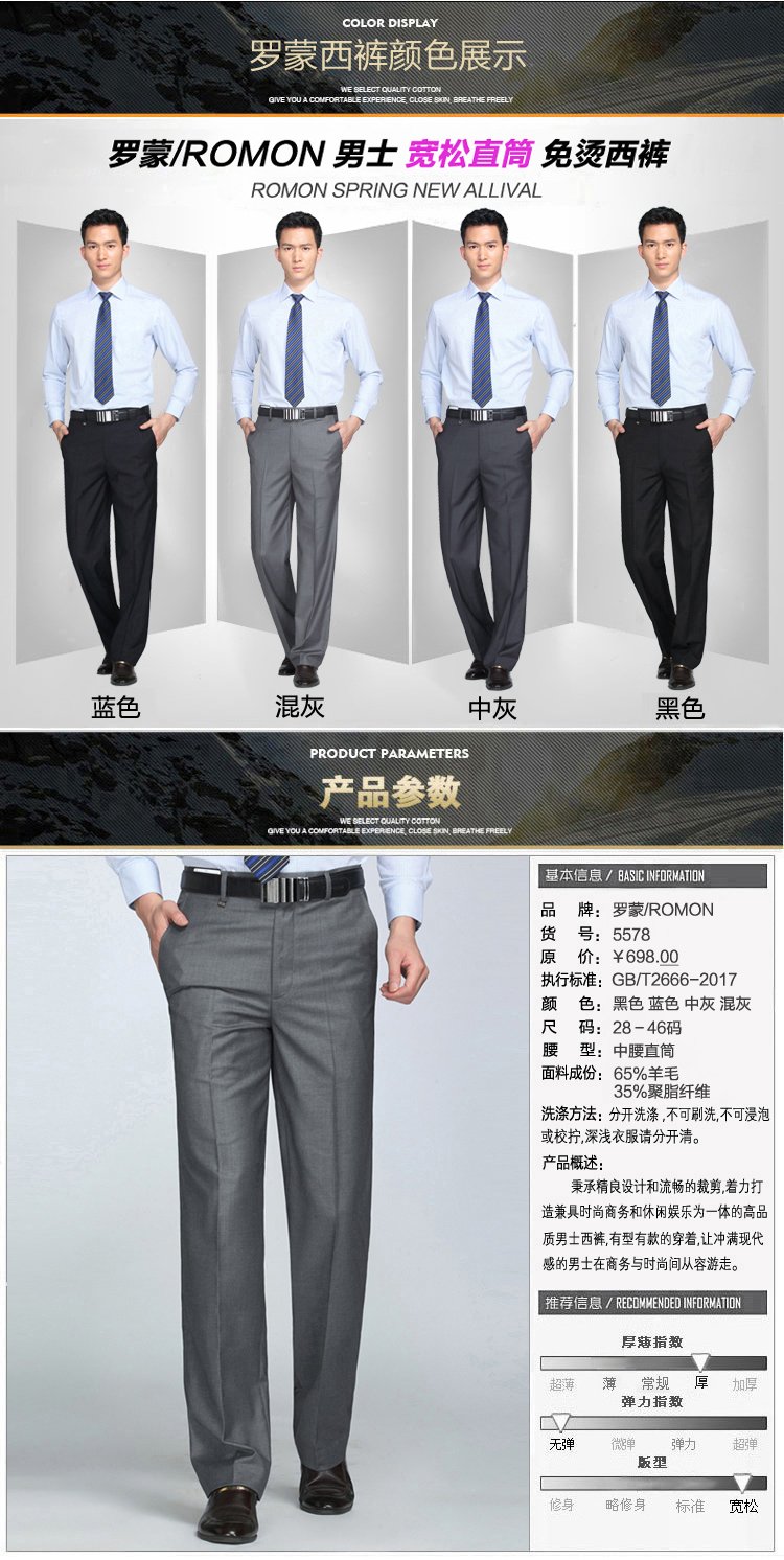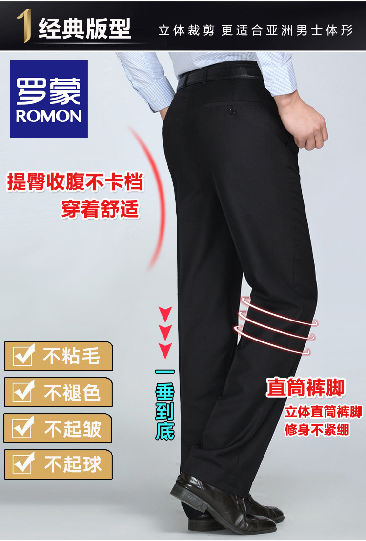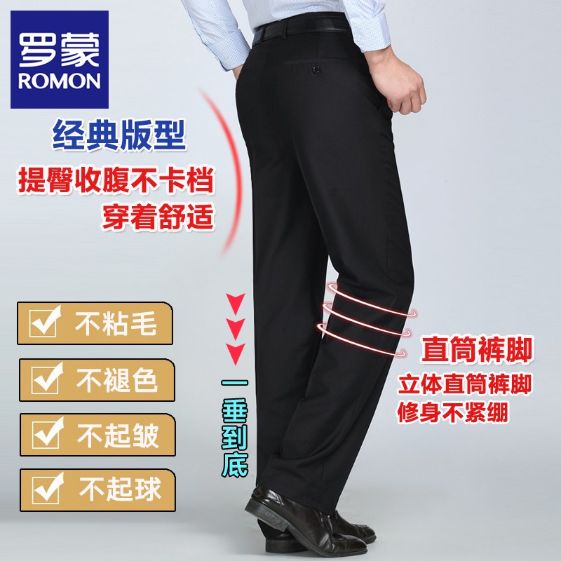| 产品名称 : | 罗蒙秋冬厚款男士西裤宽松直筒免烫商务休闲裤纯色垂感西装长裤子 |