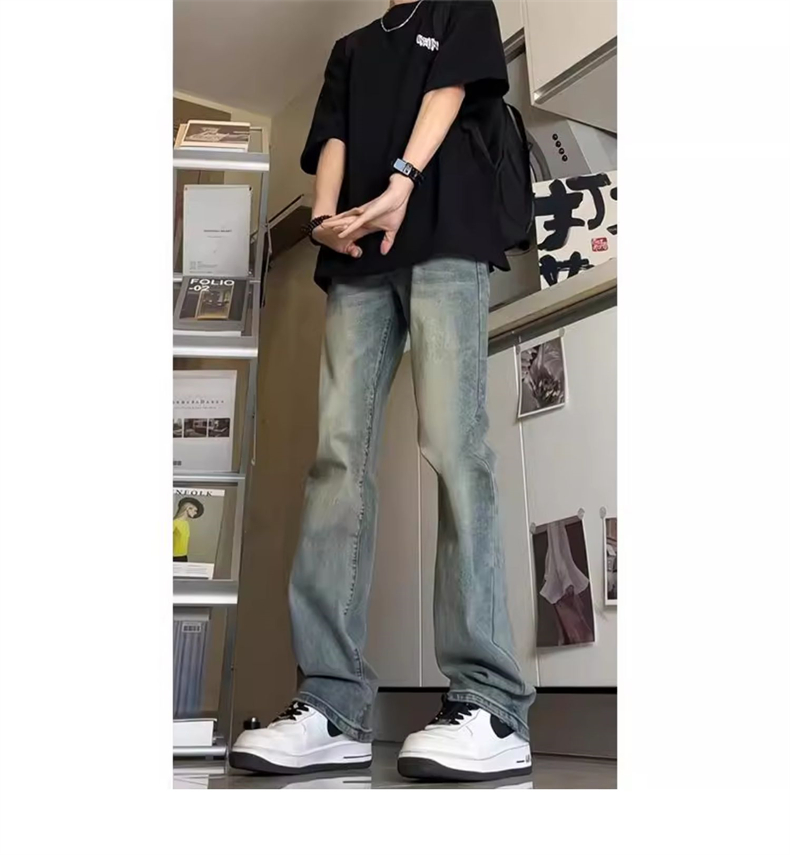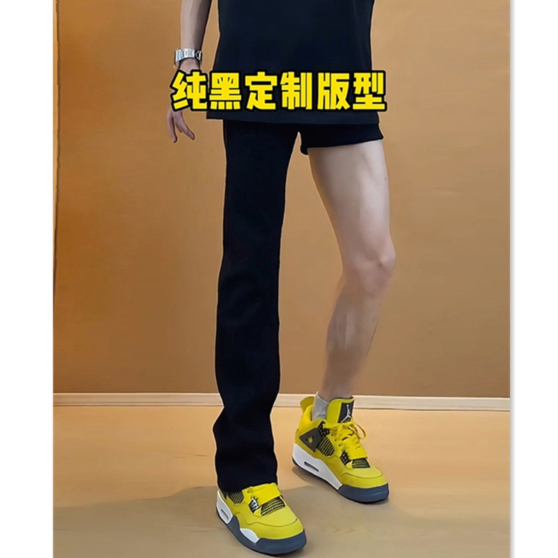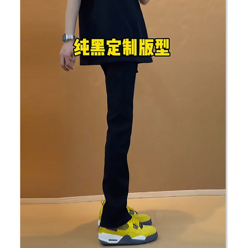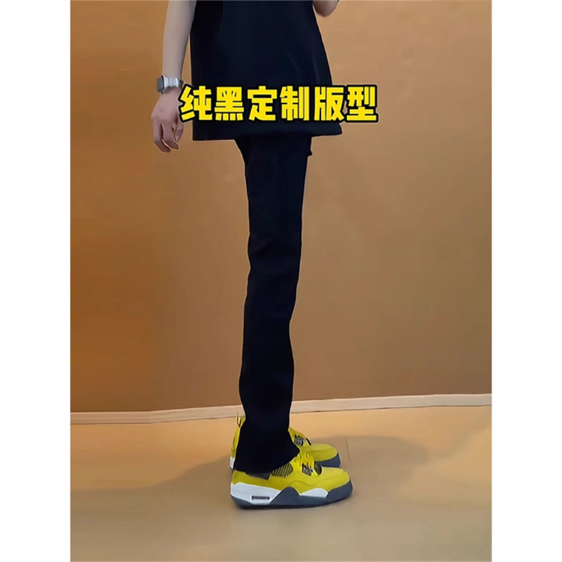| 产品名称 : | 黑色柳叶弯刀牛仔裤男款秋冬季修身加绒直筒裤子高街vibe风微喇裤 |