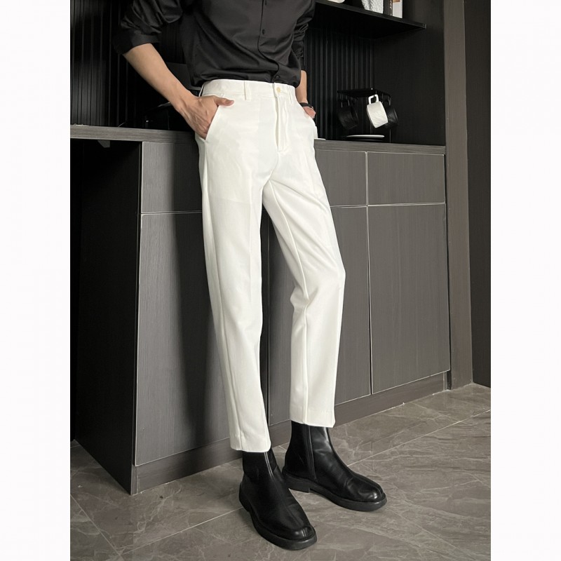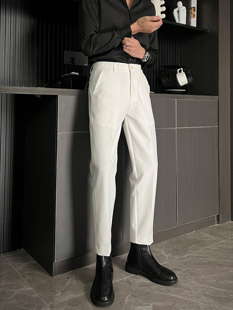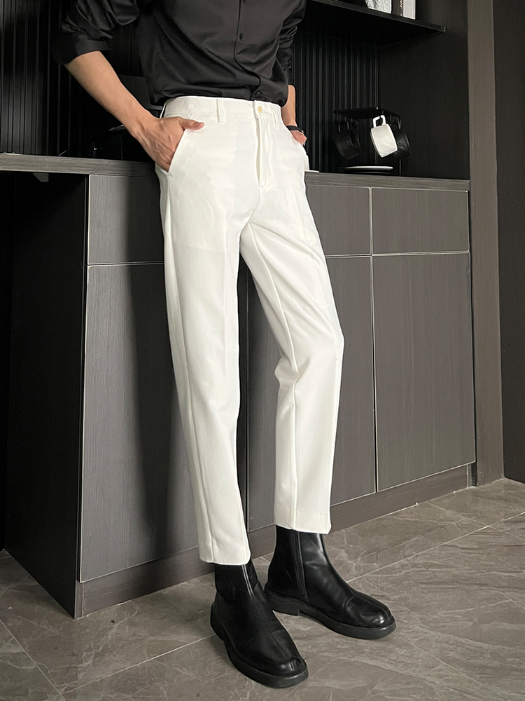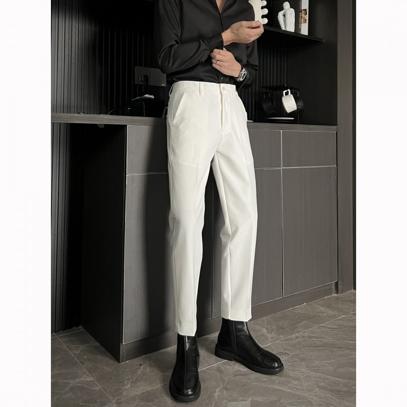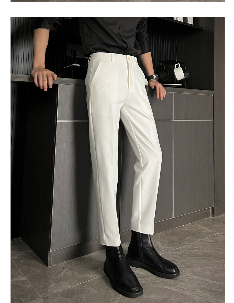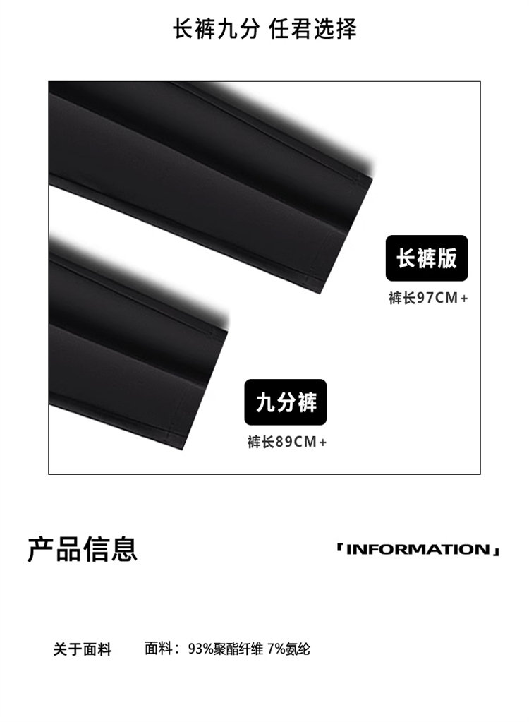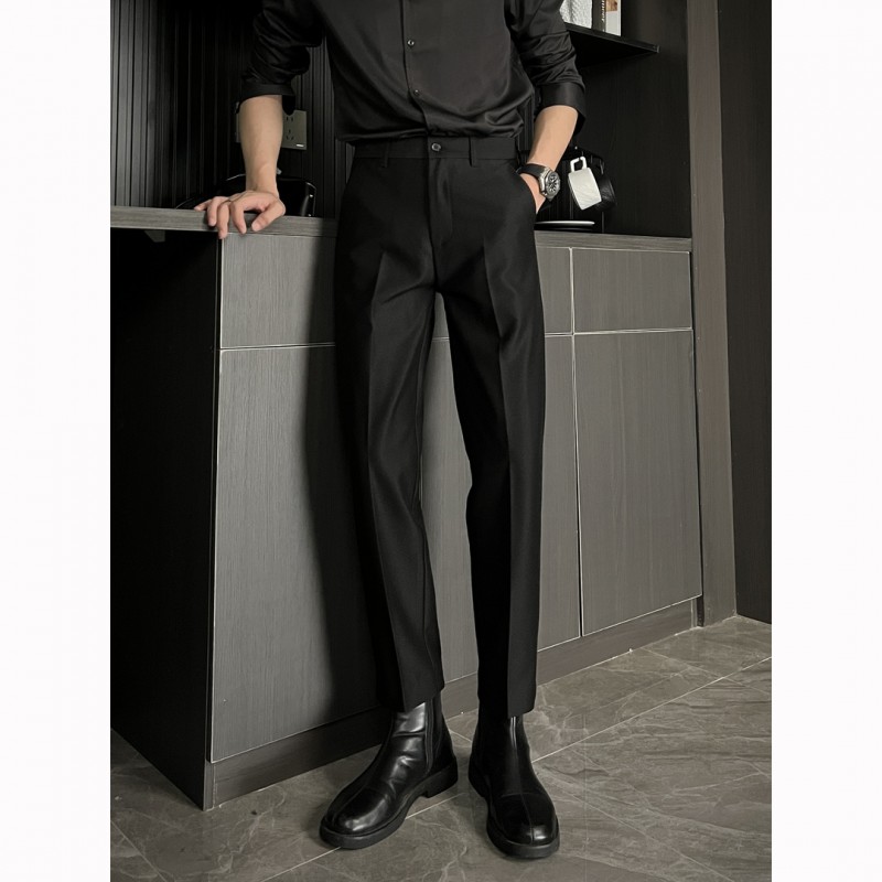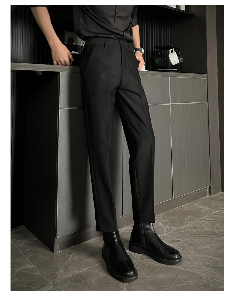 黑色那不勒斯直筒西裤男休闲窄版九分裤痞帅高级感男装冰丝长裤子