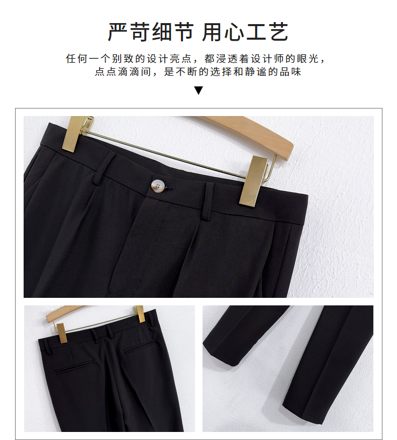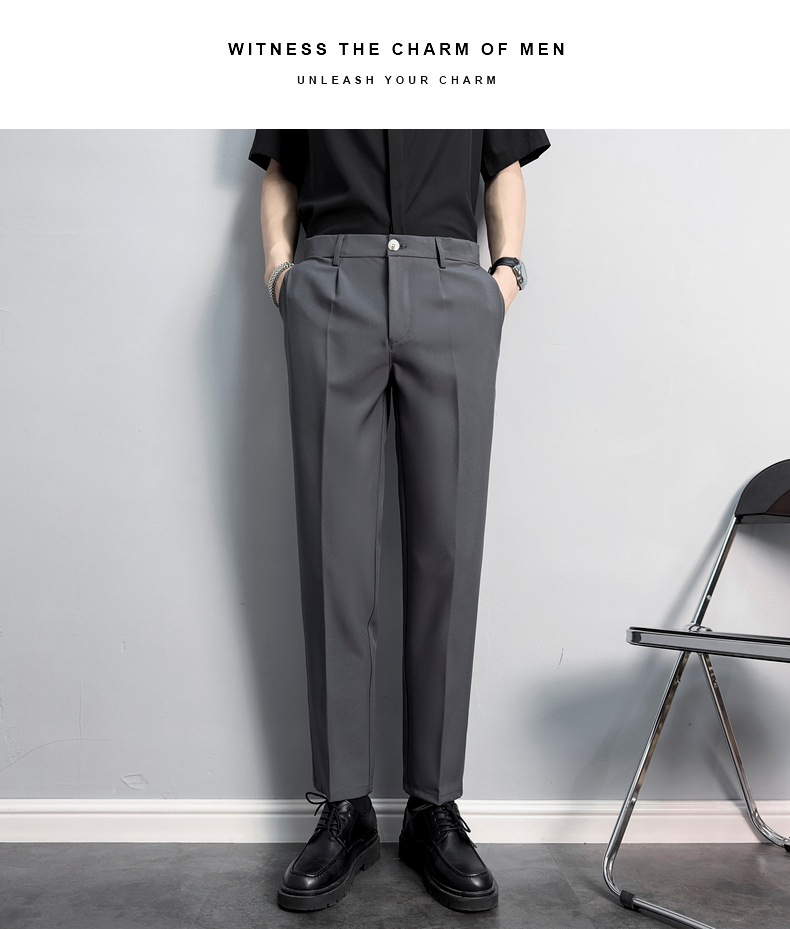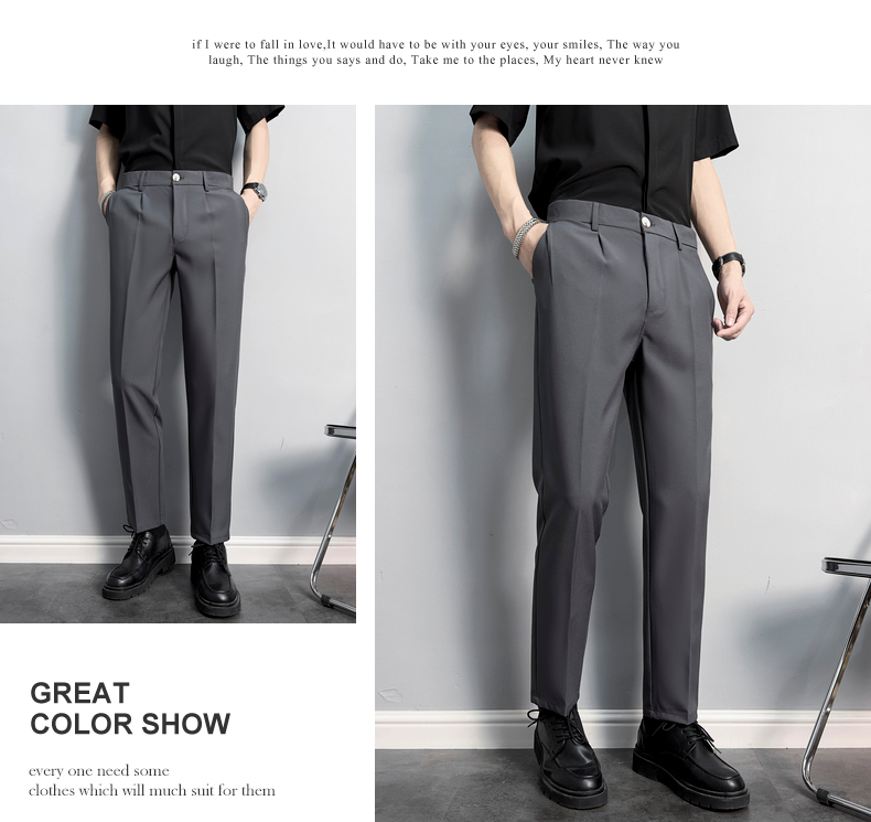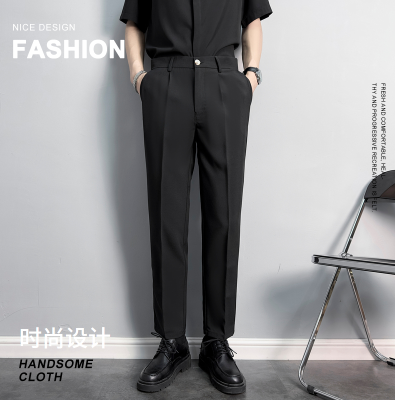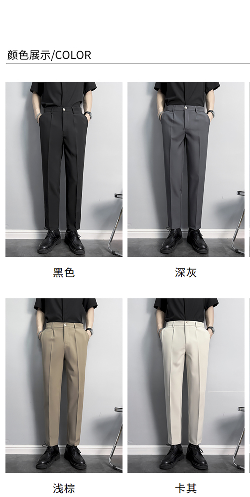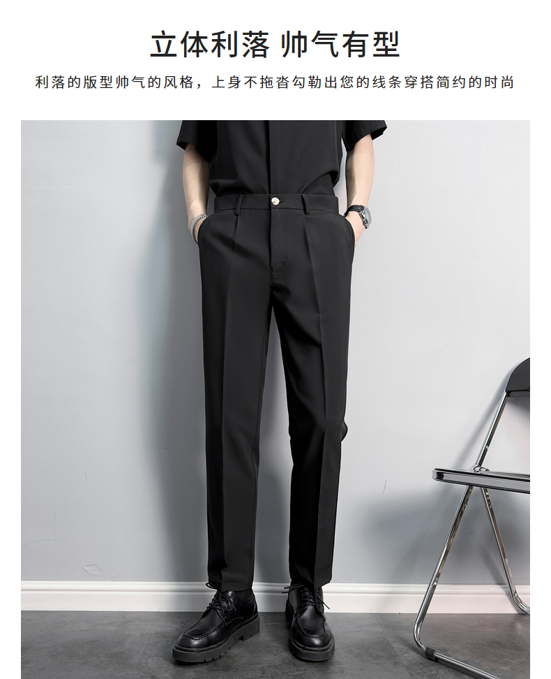 | 产品名称 : | 西装长裤男修身直筒抗皱免熨烫商务休闲裤高级垂感黑色九分小西裤 |