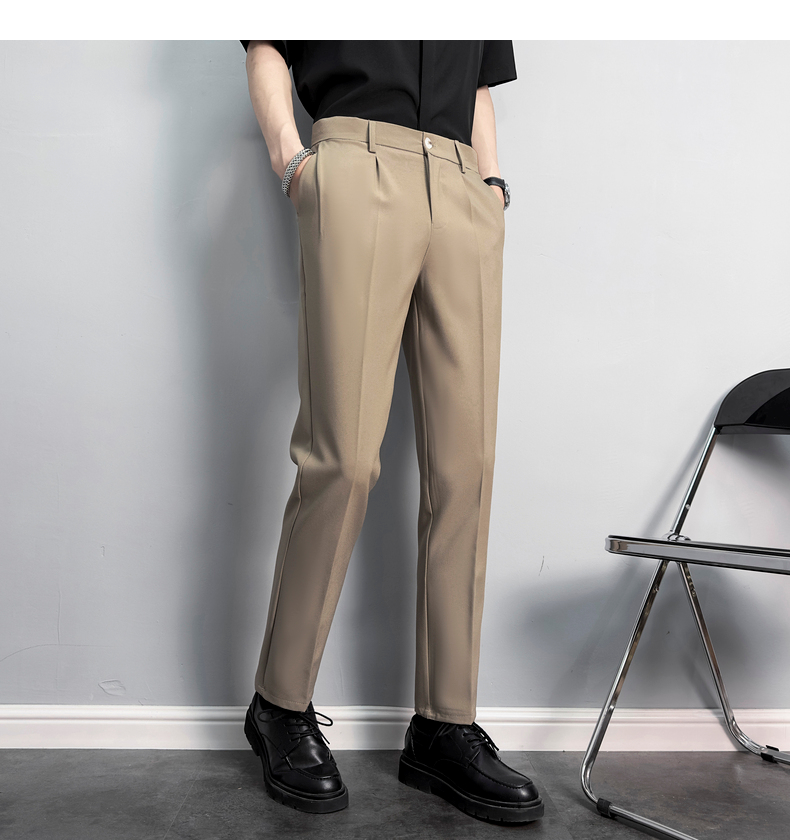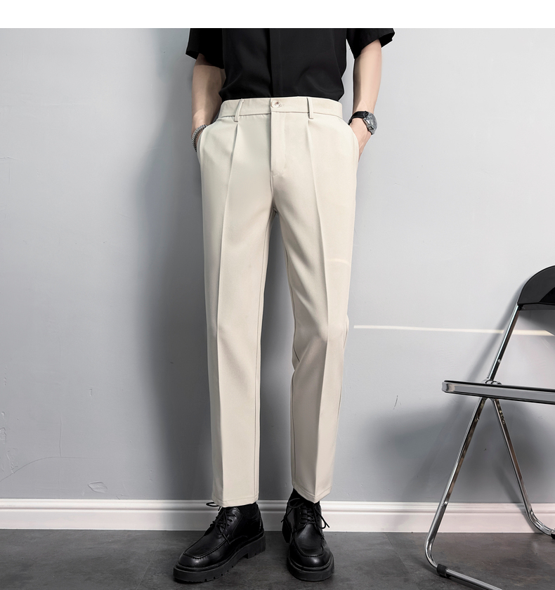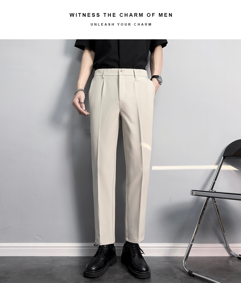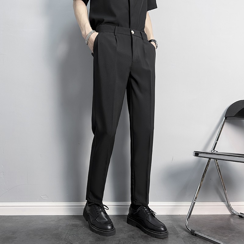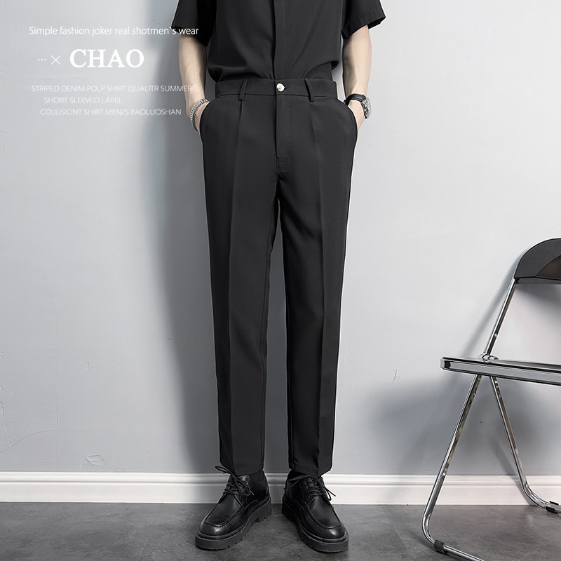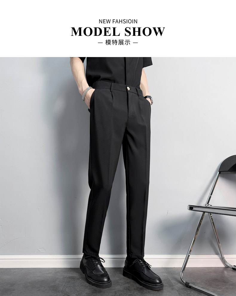 | 产品名称 : | 西装长裤男修身直筒抗皱免熨烫商务休闲裤高级垂感黑色九分小西裤 |