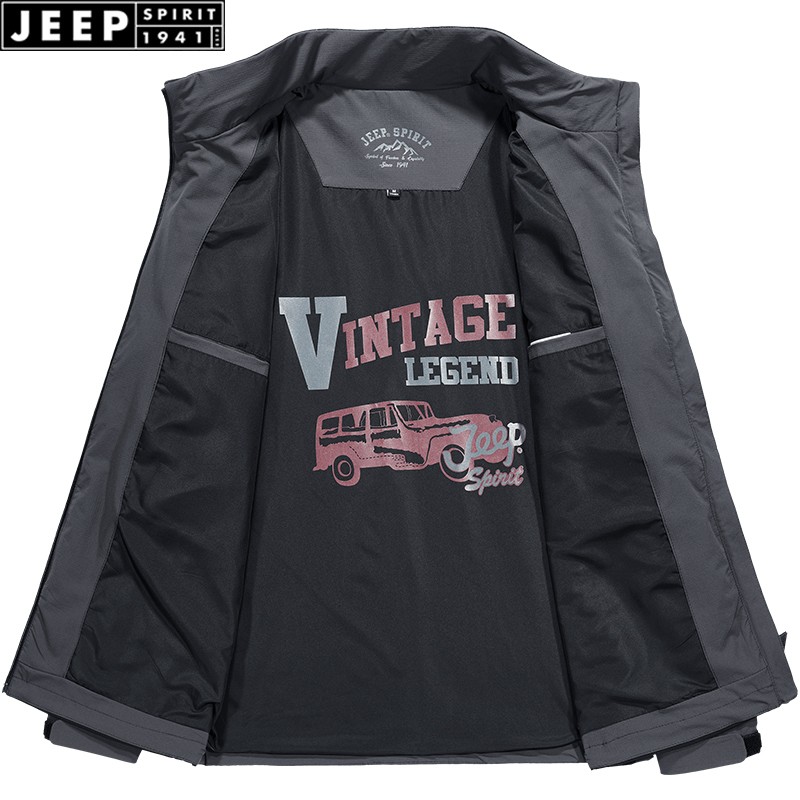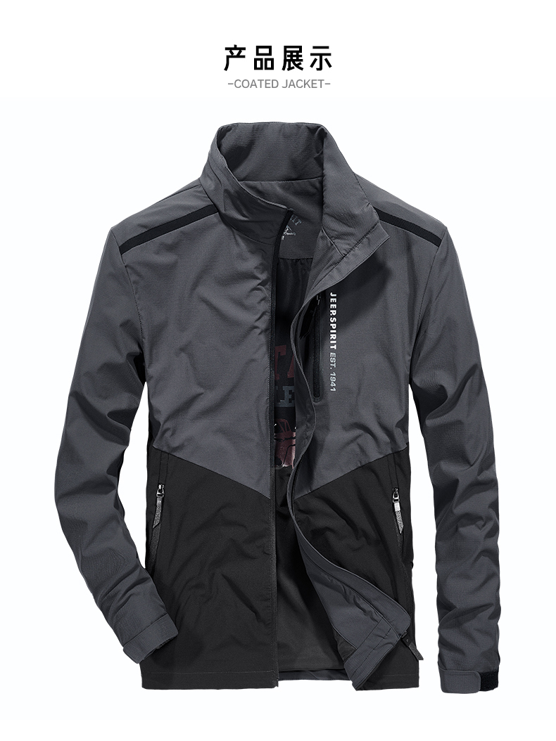 | 产品名称 : | JEEP吉普春秋季薄款拼色宽松休闲时尚立领夹克外套男士上衣茄克衫 |