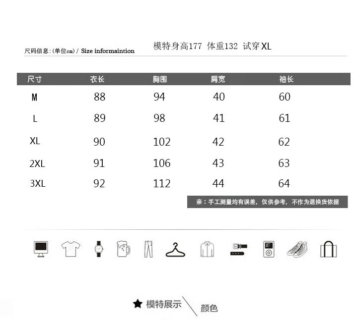 | 尺码: | M 合适90-105斤,L 合适110-125斤,XL 合适128-140斤,2XL 合适142-150斤,3XL 合适152-165斤,4XL 合适170-180斤,5XL 合适182-200斤 |