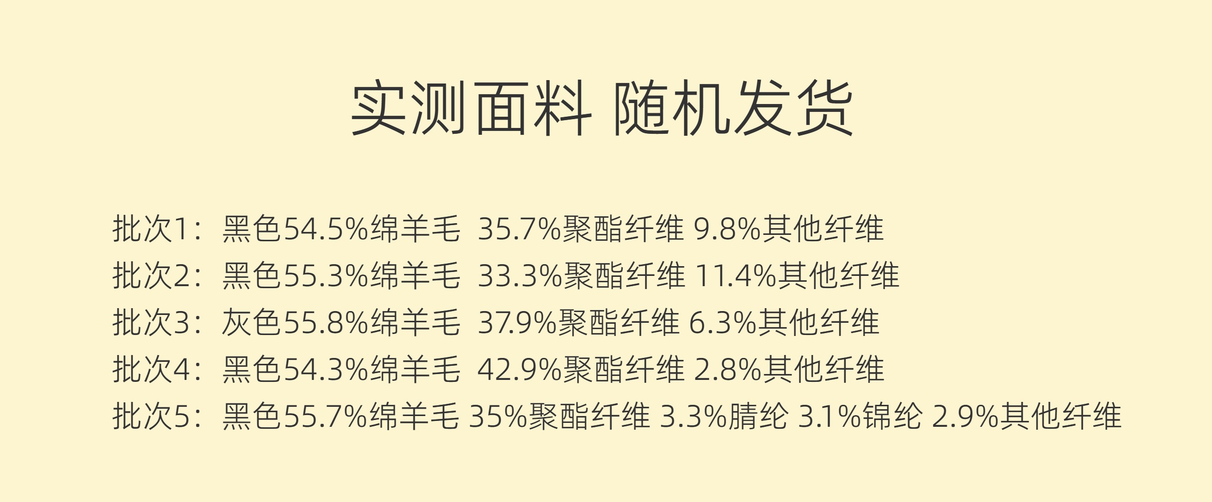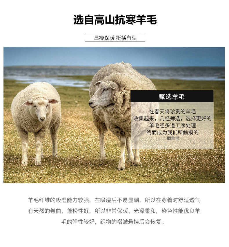 | 材质成分: | 绵羊毛55.4% 聚酯纤维42.2% 其他材质2.4% |