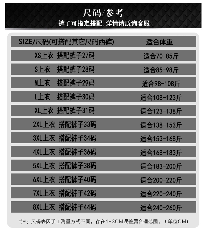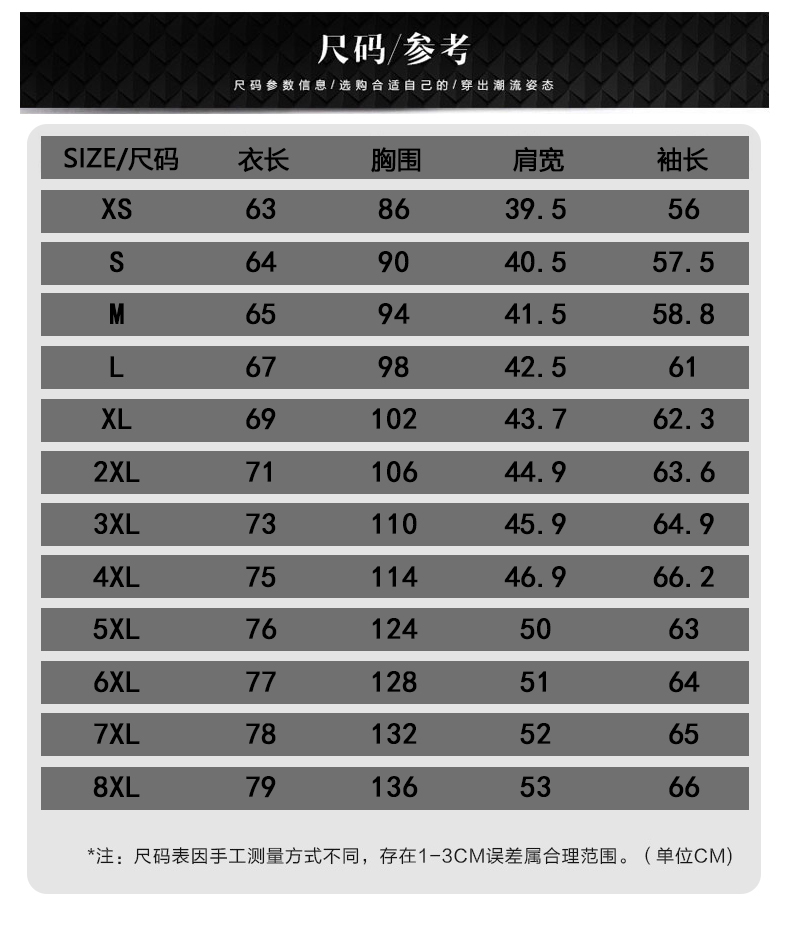 | 尺码: | 2XL 3XL S M XL XS L 4XL 5XL 6XL 7XL 8XL 可定制不开叉,详情质询客服 |