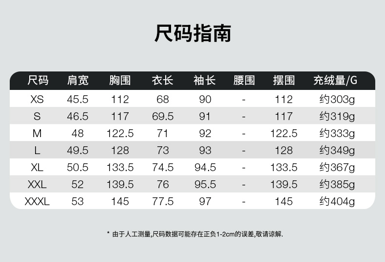 | 充绒量: | 300g及以上 |