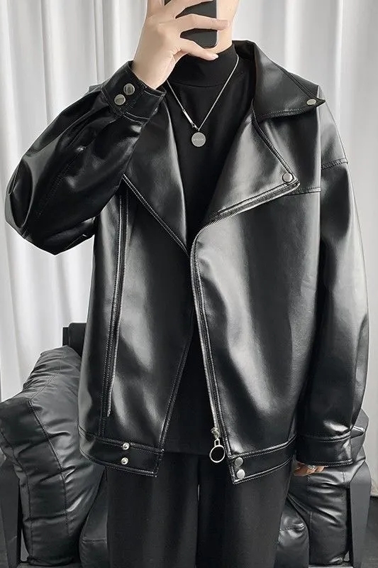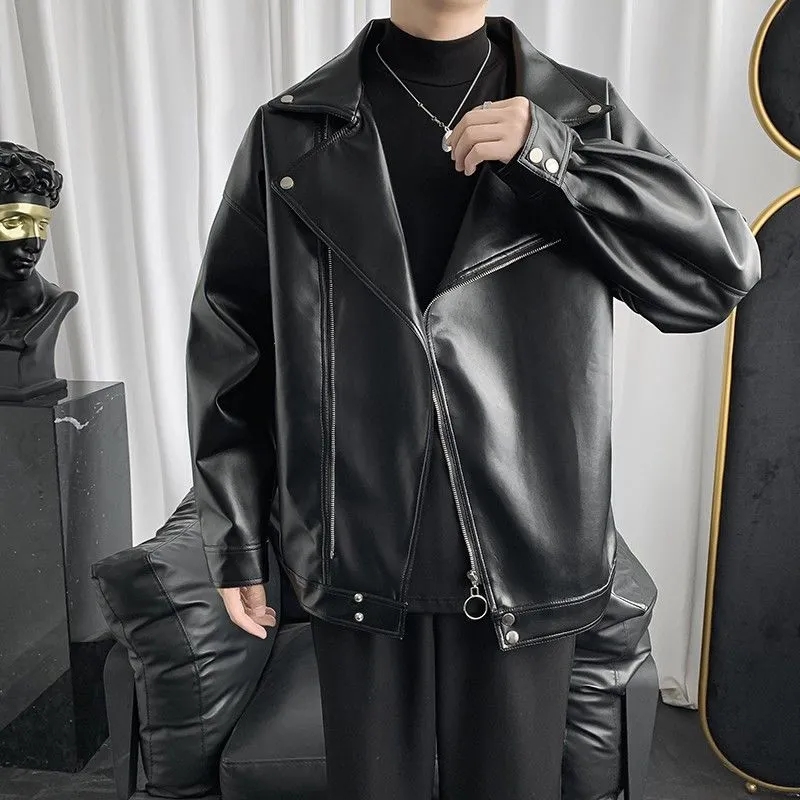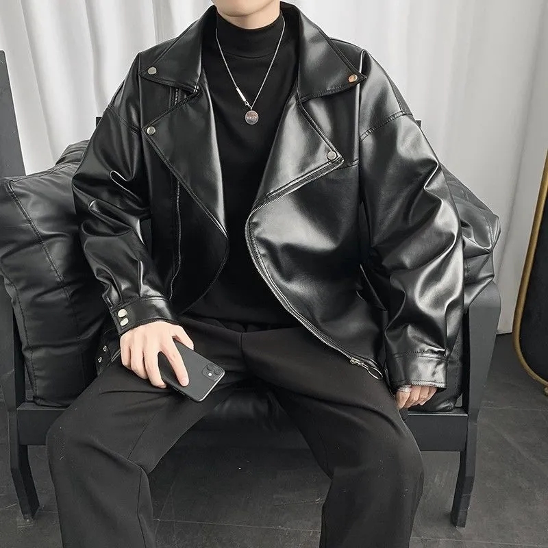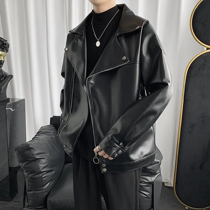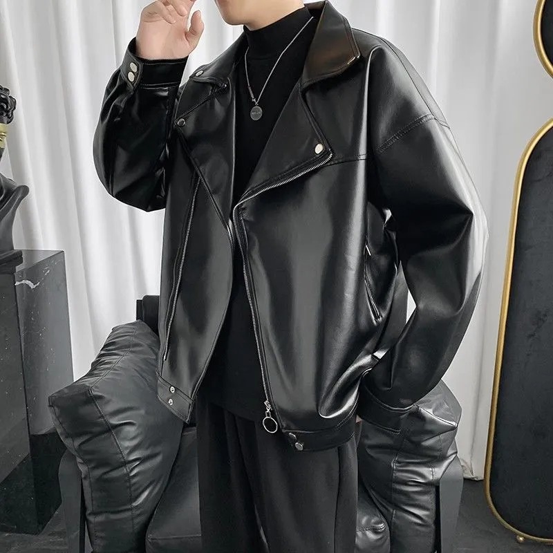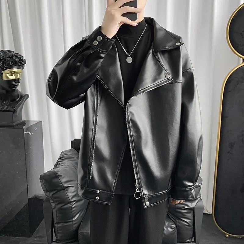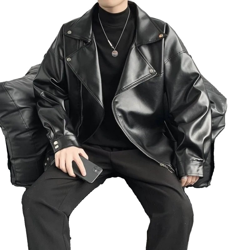 美式复古机车皮衣外套男秋季潮牌斜拉链大翻领短款飞行员皮夹克男