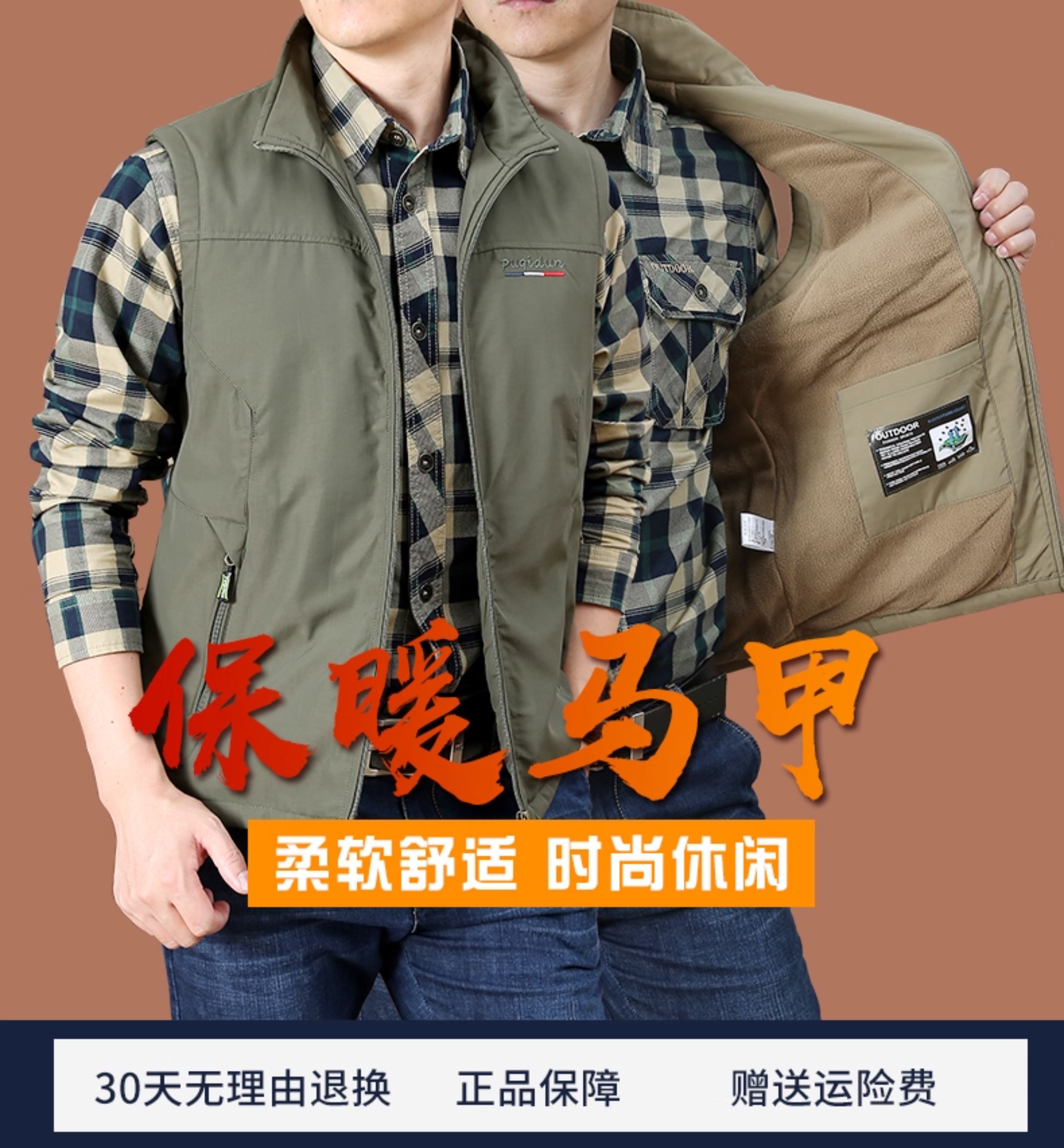 | 产品名称 : | 加绒加厚大码宽松马甲男士秋季保暖坎肩户外速干立领背心男装外套 |