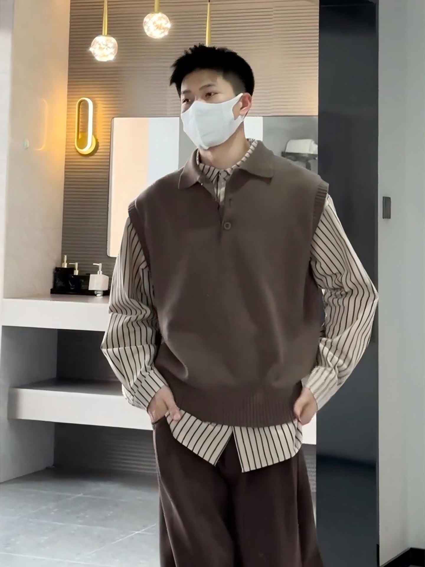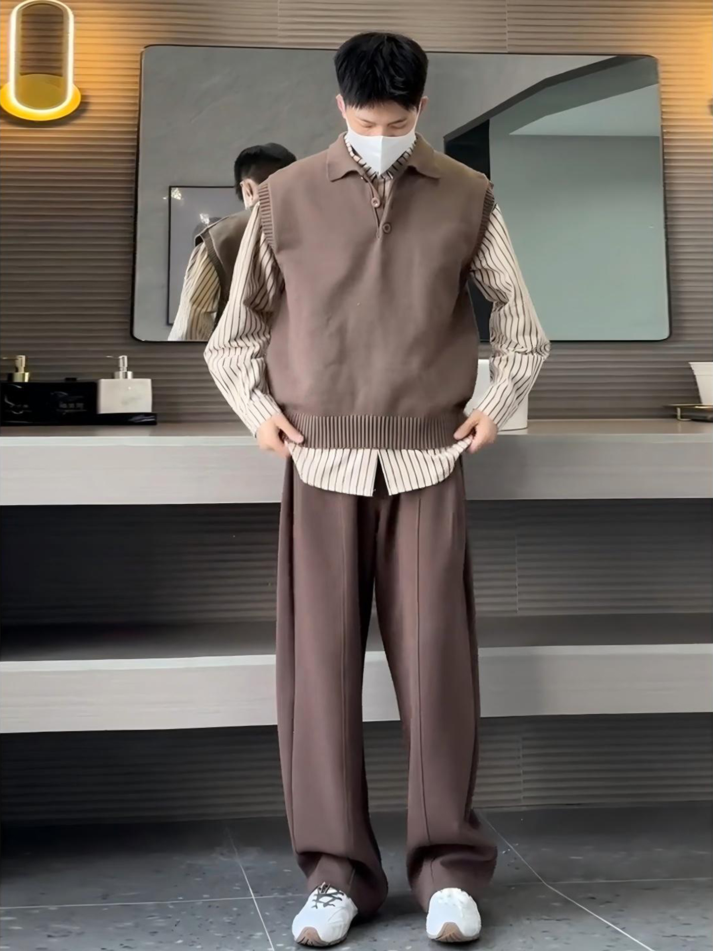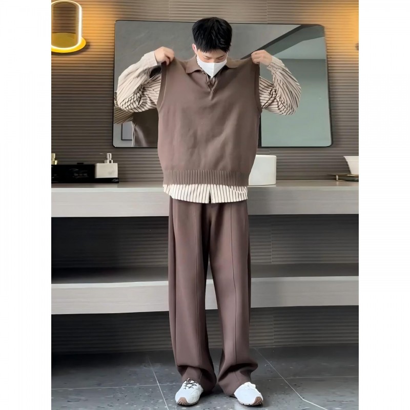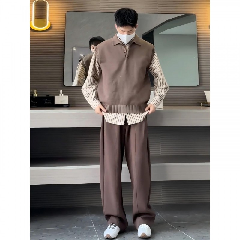 | 产品名称 : | 美拉德polo领针织衫坎肩韩系轻熟雅痞风男装套装垂感直筒阔腿西裤 |