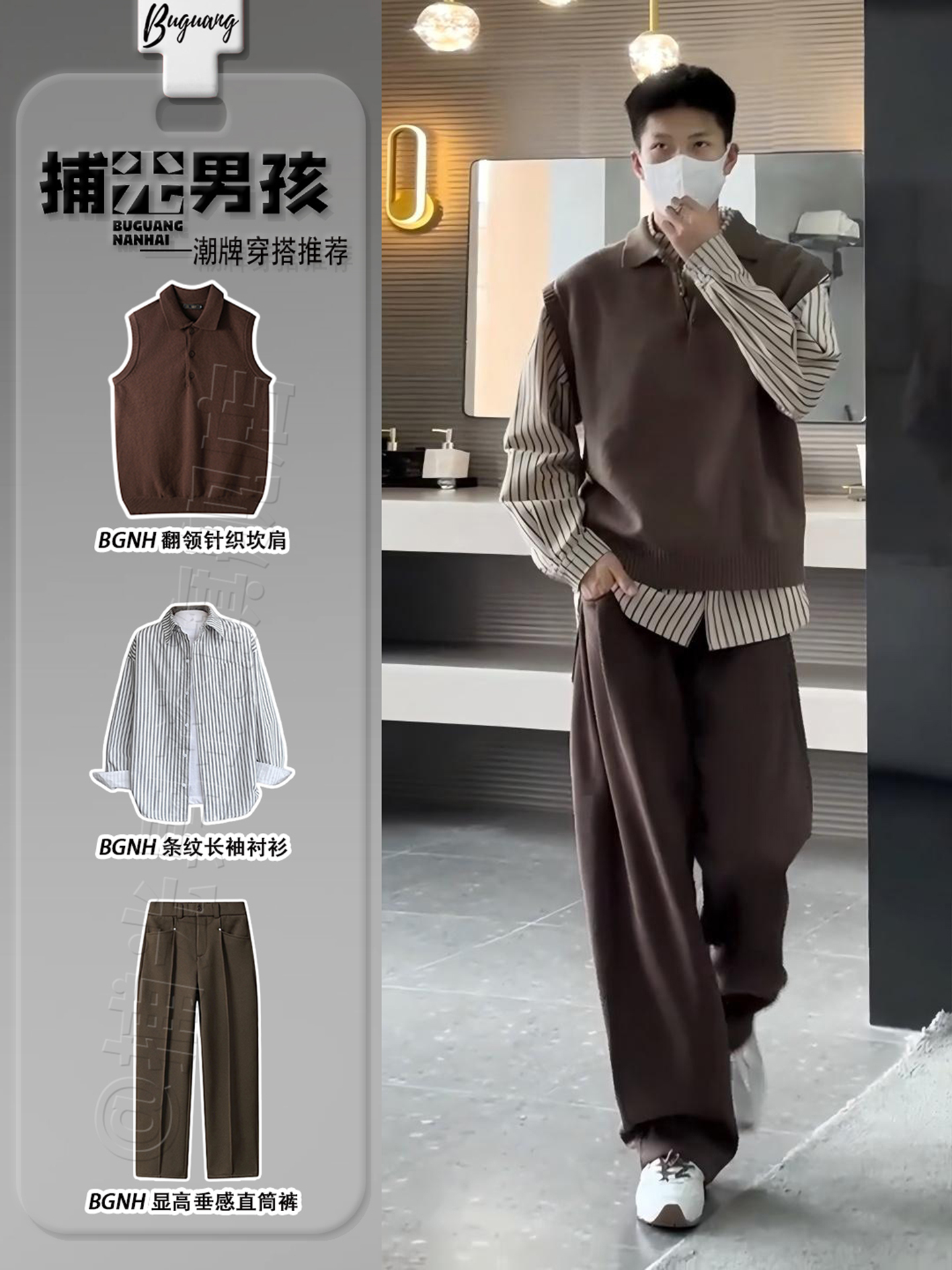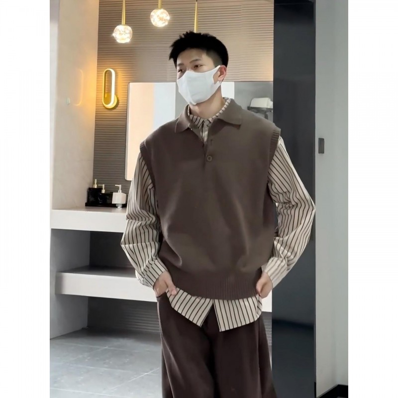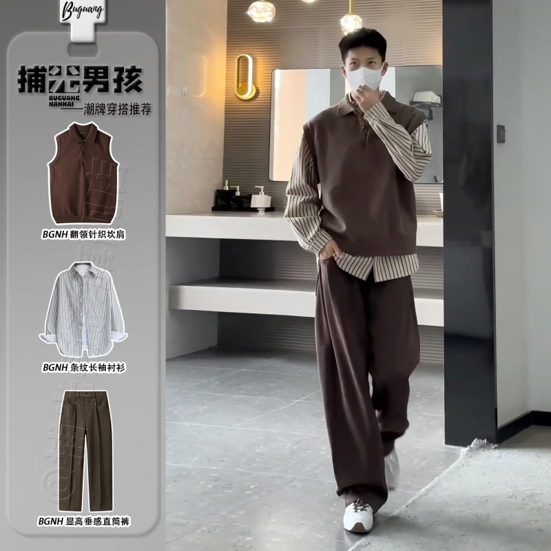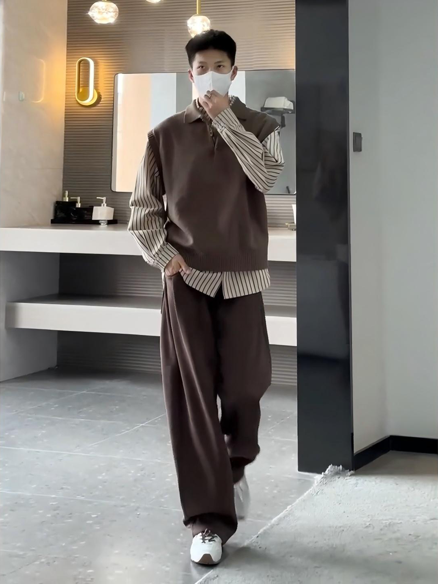 | 产品名称 : | 美拉德polo领针织衫坎肩韩系轻熟雅痞风男装套装垂感直筒阔腿西裤 |