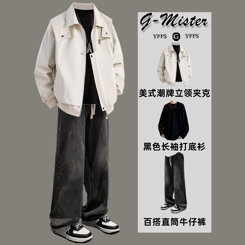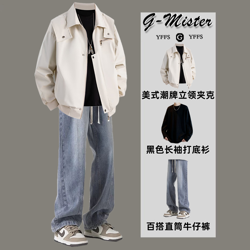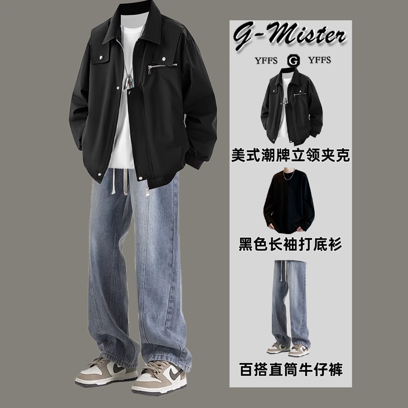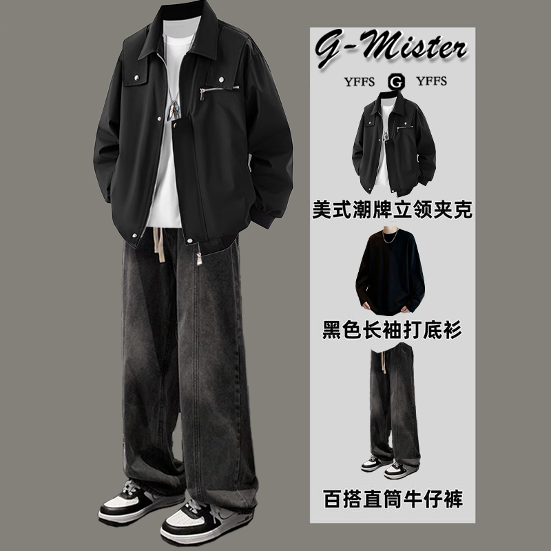 | 产品名称 : | 美式工装外套男生潮流春秋季帅气时髦男士酷帅搭配牛仔裤休闲套装 |