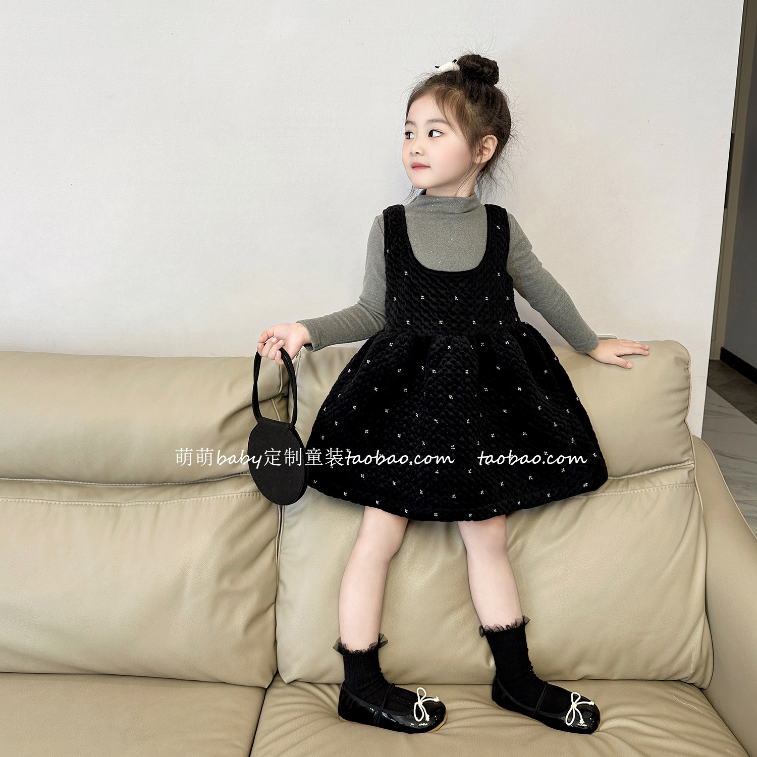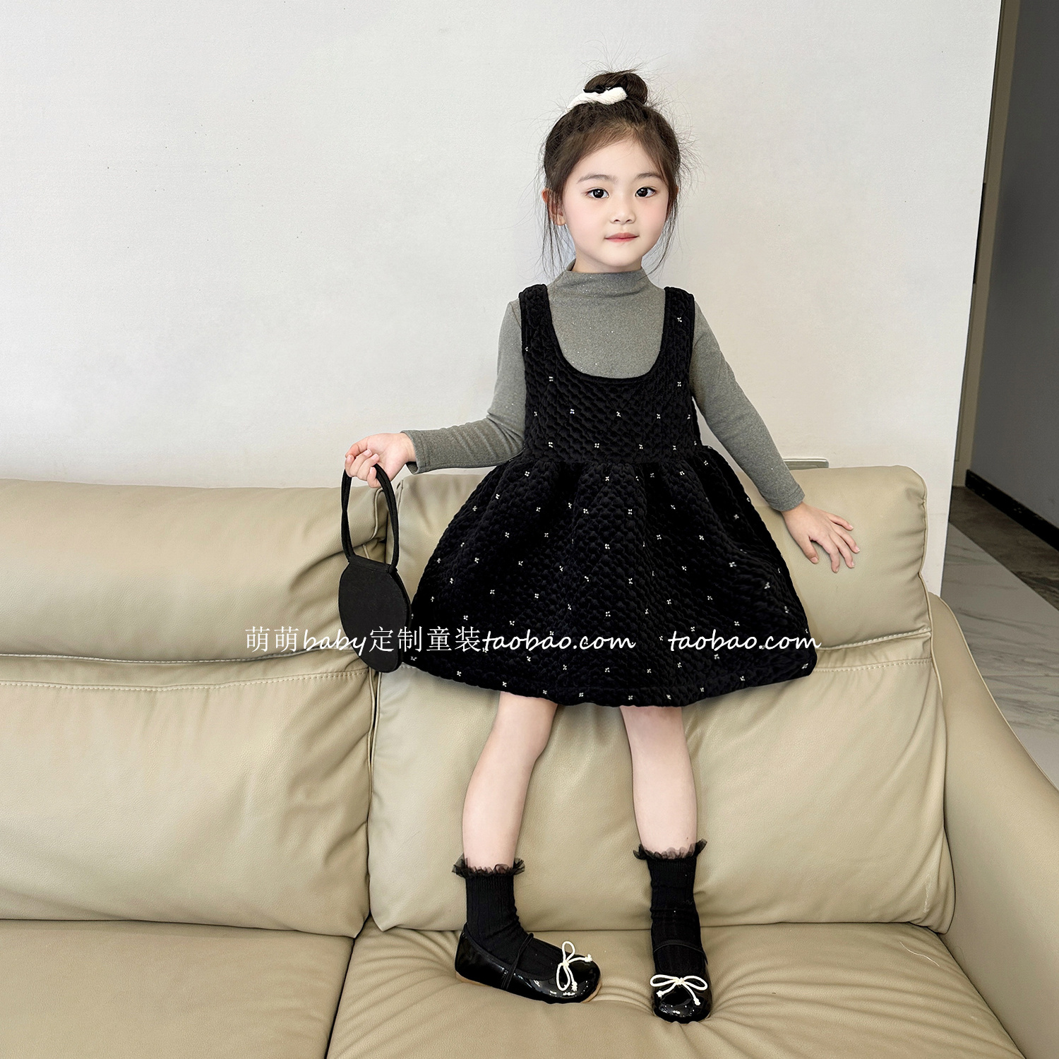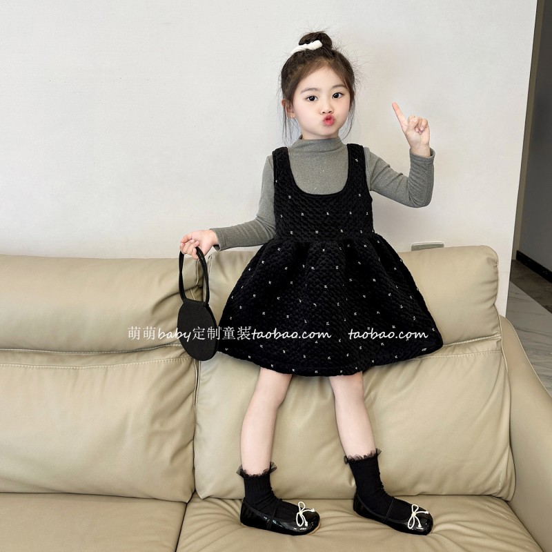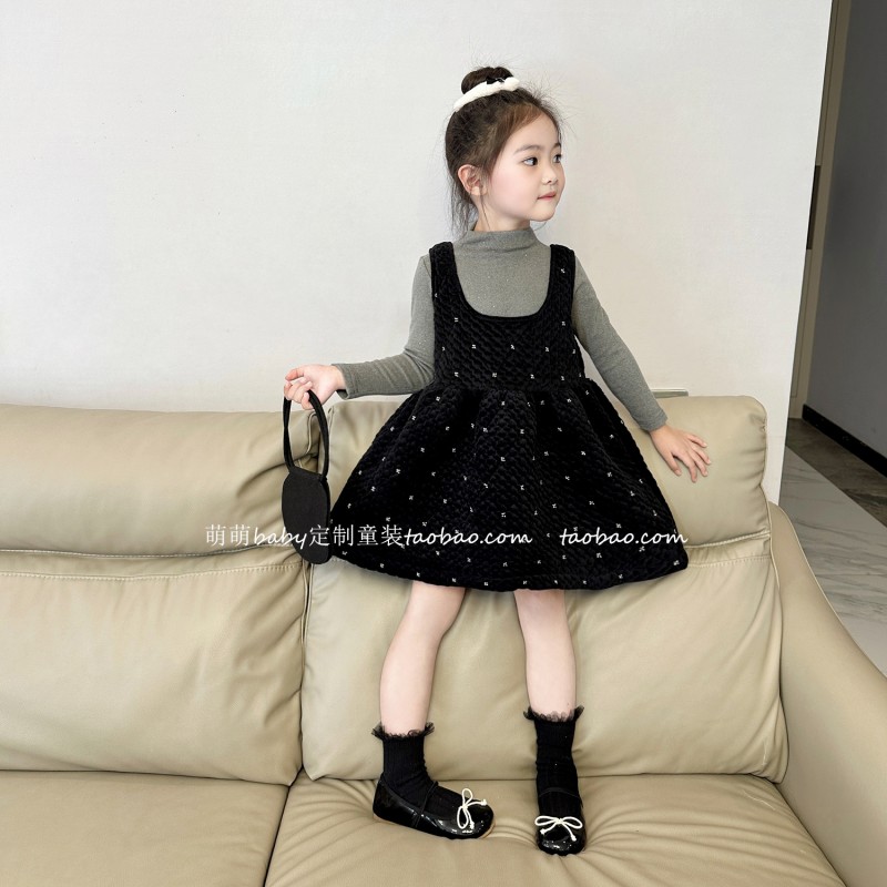 原创童装女童闪闪丝绒背心裙2025秋冬儿童宝宝气质夹棉无袖连...
