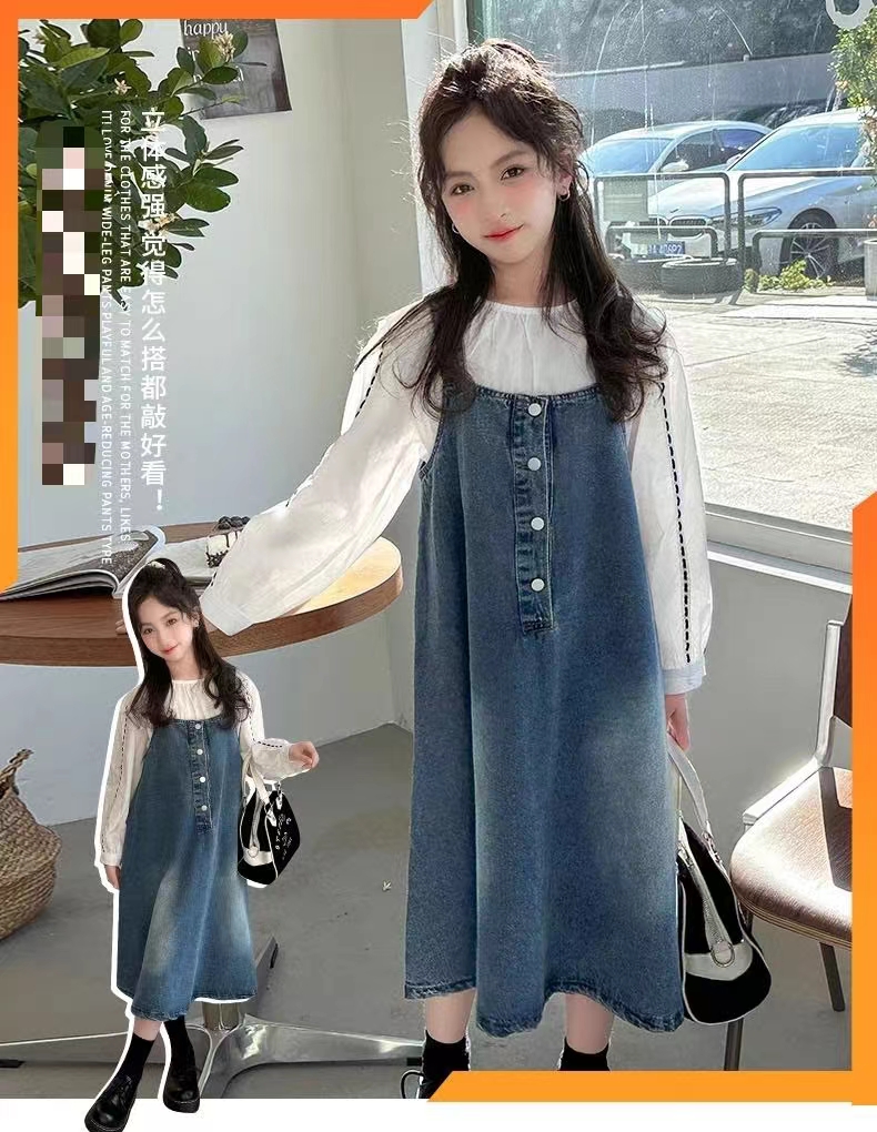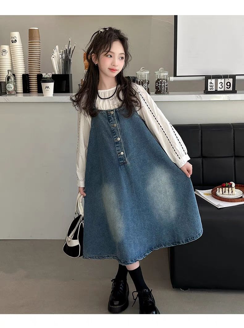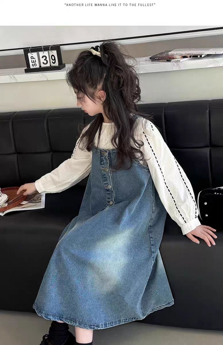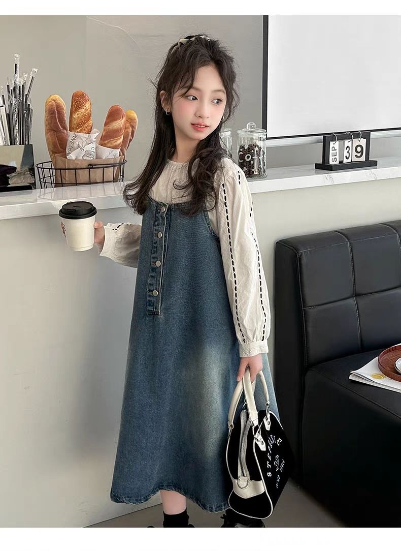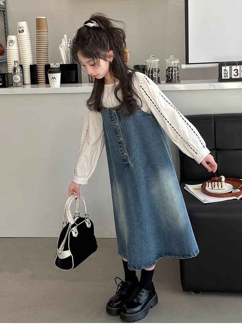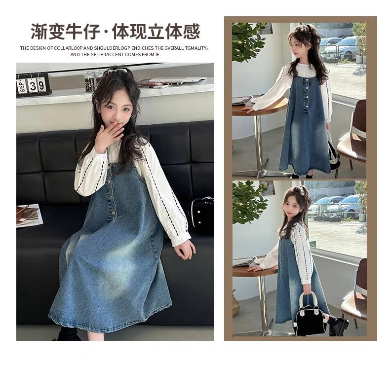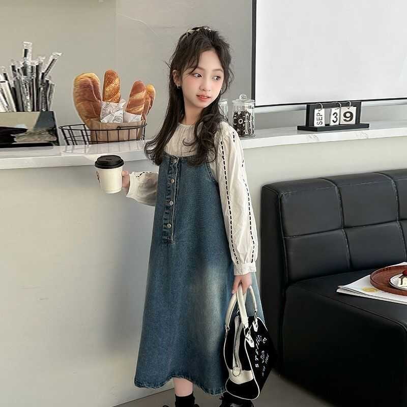 女童牛仔背带裙2025秋季新款中大童洋气连衣裙女孩休闲百搭裙...