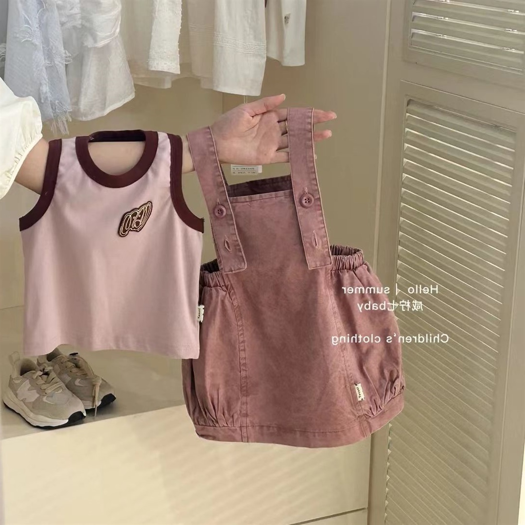 粉色背心+背带裙