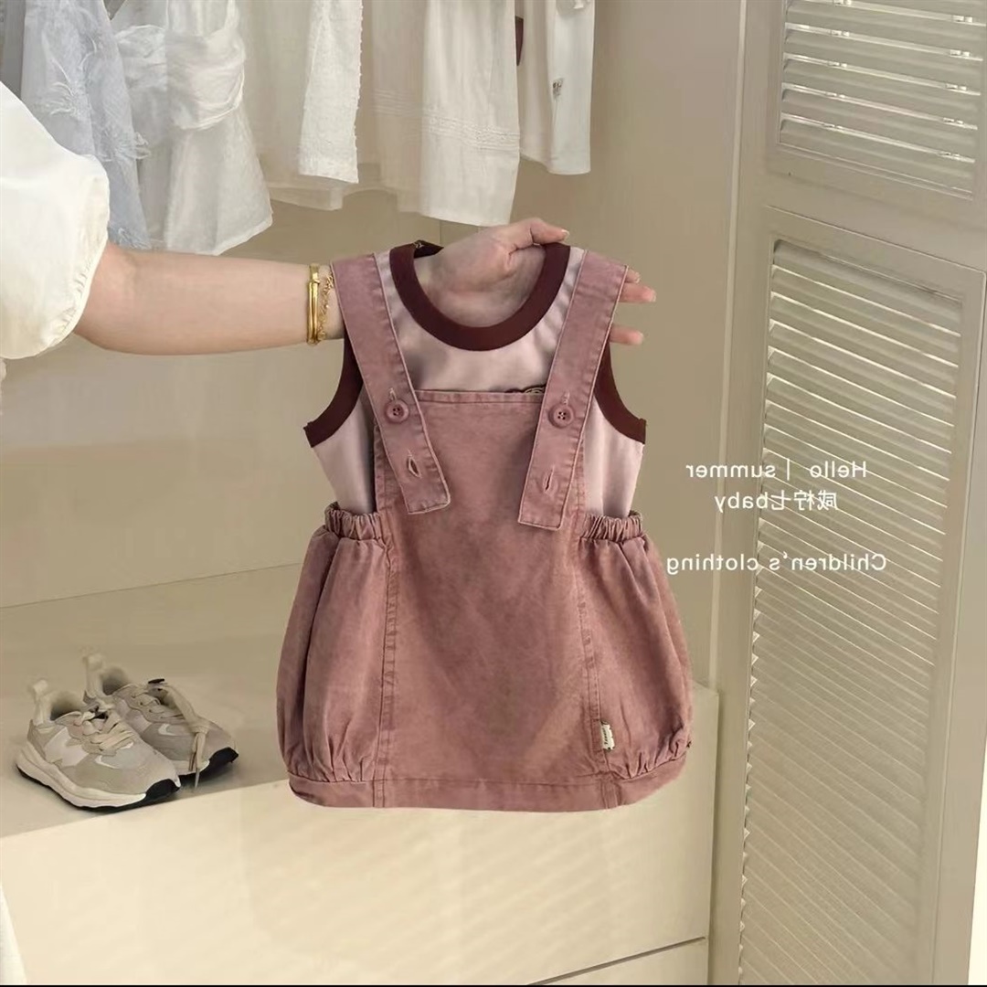 女童夏装连衣裙多巴胺穿搭套装夏季背带裙宝宝牛仔裙儿童装裙子