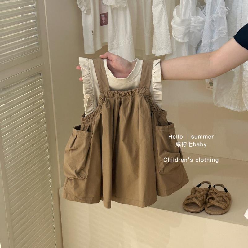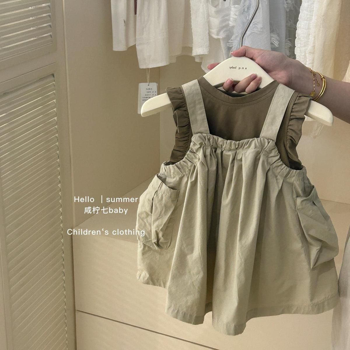 女童套装夏装2025新款工装背带裙休闲儿童女宝宝连衣裙夏季吊...