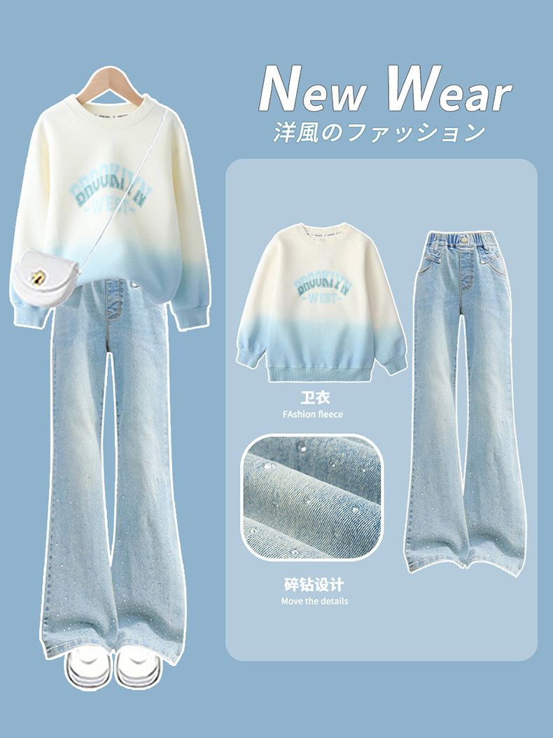 | 产品名称 : | 女童卫衣套装儿童2025新款秋冬装牛仔喇叭裤大童洋气加绒春秋衣服 |