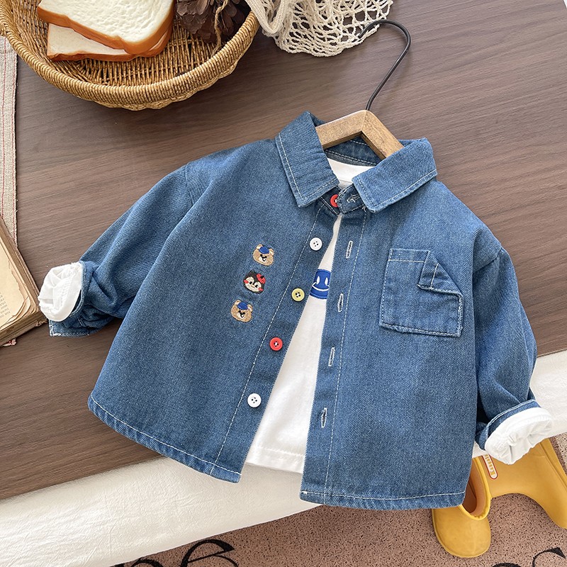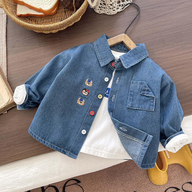 | 产品名称 : | 儿童水洗牛仔衣男童衬衫秋季宝宝外衣春秋款时髦女童外套小童衣服 |