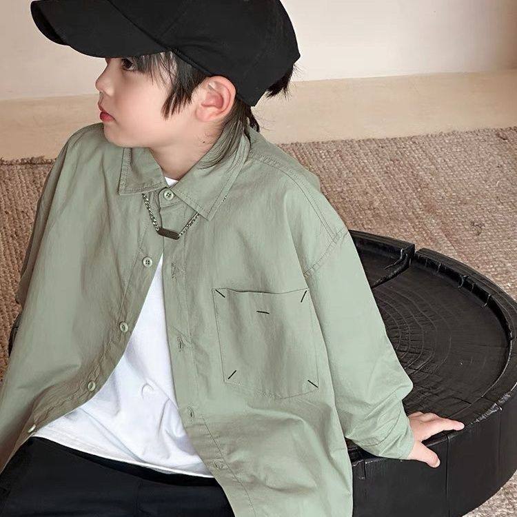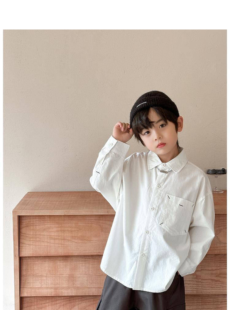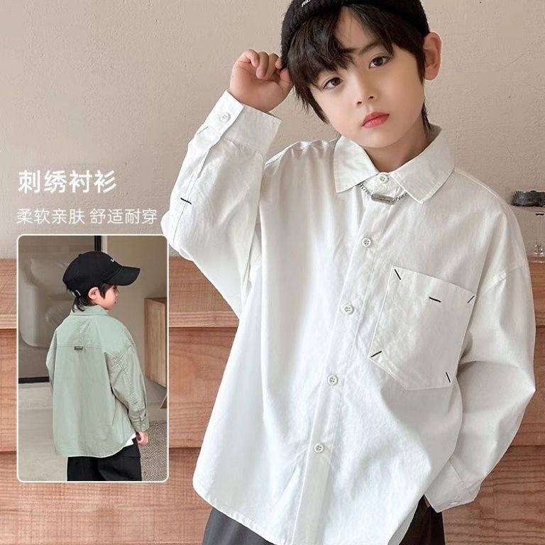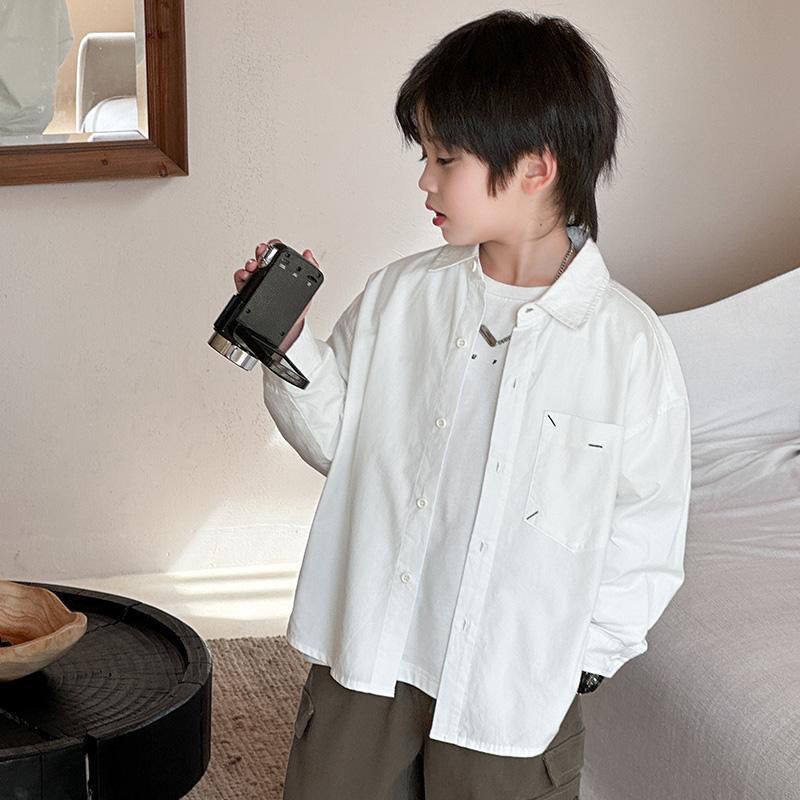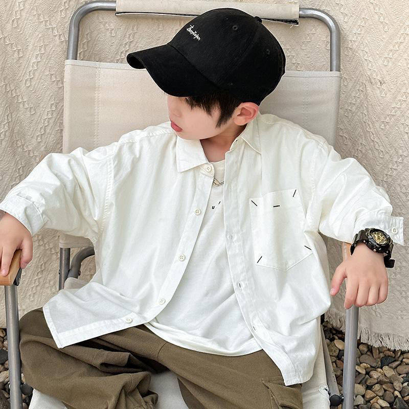 童装男童长袖衬衫春秋款2024新款儿童白色衬衣薄款时尚帅气秋...