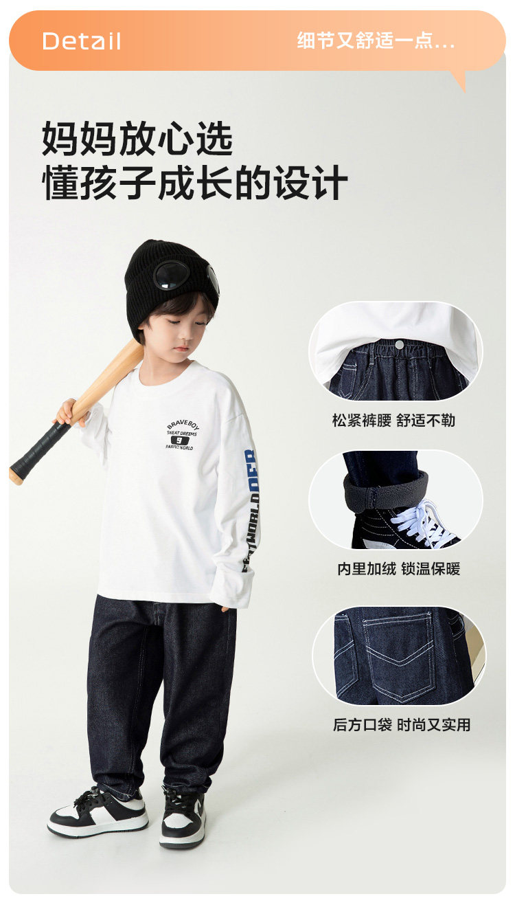 | 产品名称 : | 海妈家童装男童裤子儿童牛仔裤加绒加厚2025新款男孩秋冬长裤秋装 |