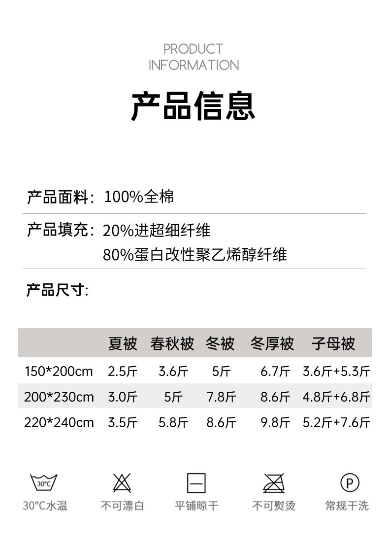 | 适用季节: | 子母被/四季被 |