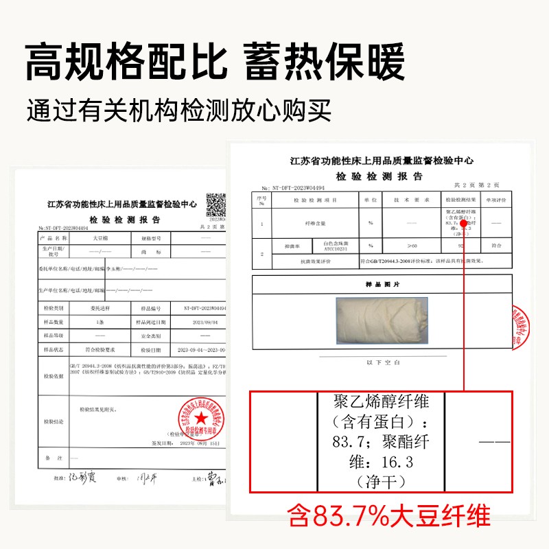 | 填充纤维种类: | 大豆蛋白改性聚酯纤维 |