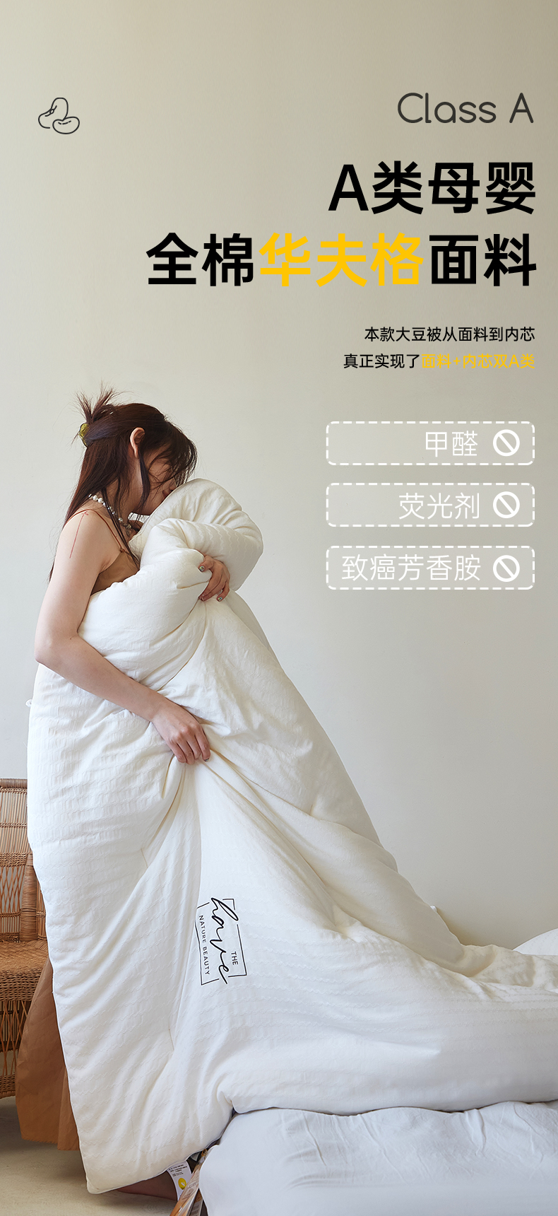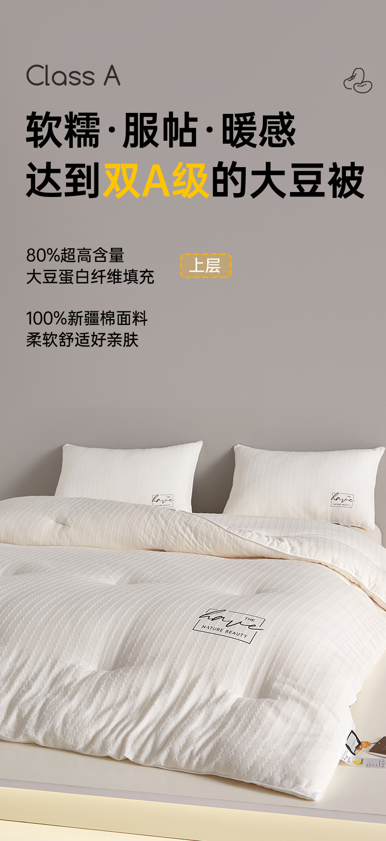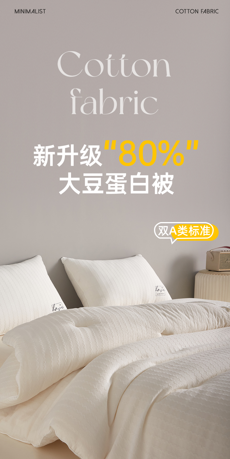 | 颜色分类: | 双A类80%素棉-大豆被 |