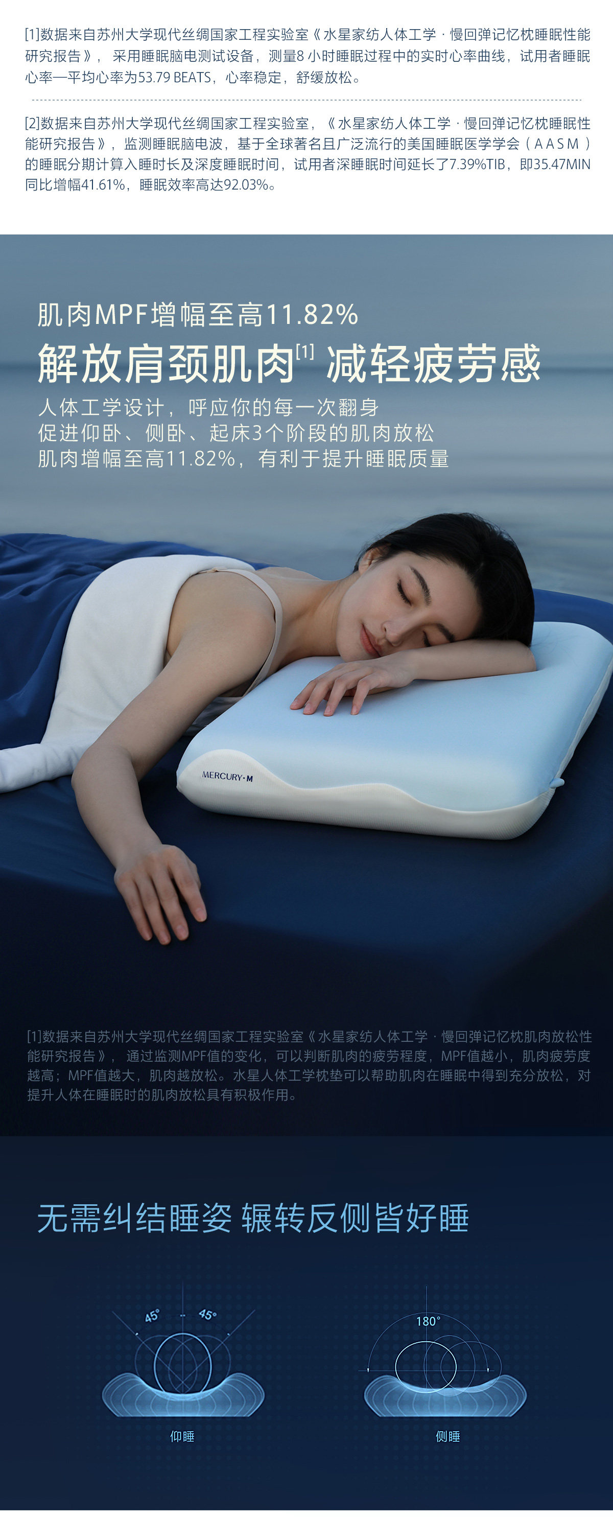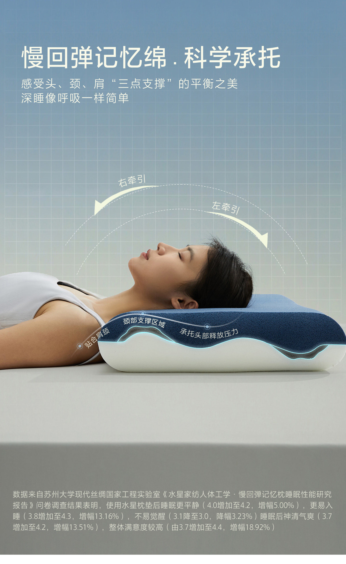 | 产品名称 : | 水星家纺人体工学枕头记忆棉深睡颈椎枕芯枕套成人礼盒辅助睡眠 |