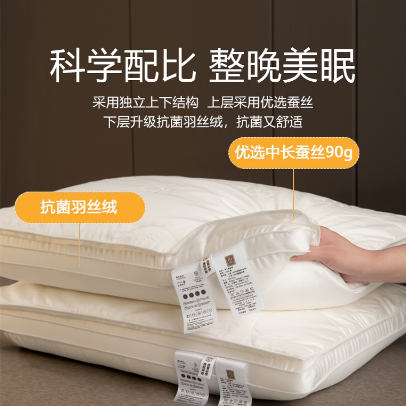 五星级酒店蚕丝枕头枕芯女助睡眠护颈椎专用不塌陷家用枕头芯一对