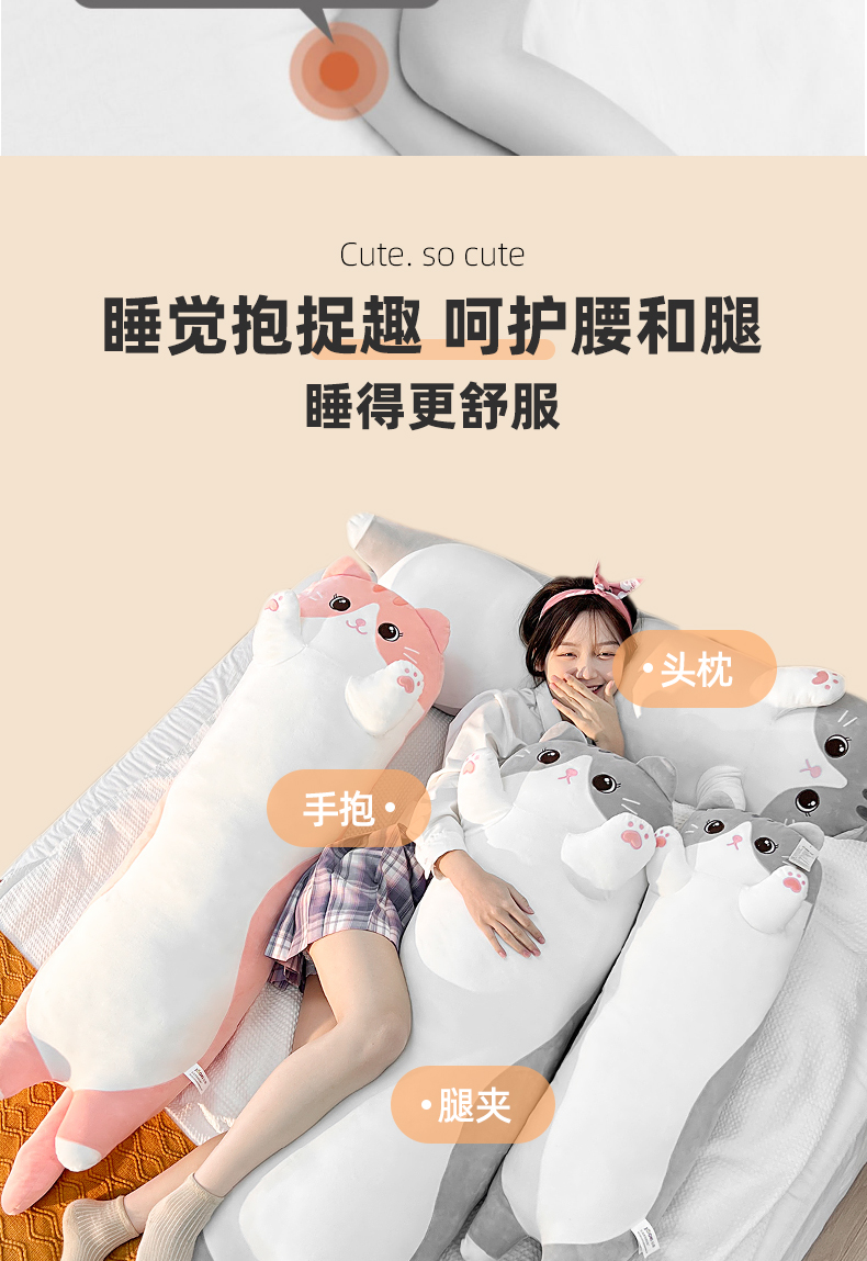| 产品名称 : | 猫咪玩偶睡觉抱枕毛绒玩具陪睡公仔专用长条夹腿娃娃女生床上冰丝 |