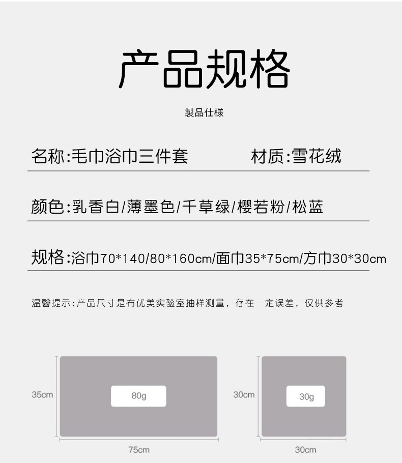 | 颜色分类: | 【源自日本】【吸水大师】【AAA级抗菌】 【品质保证】30天无理由退换货 我们承诺:【超吸水】【不掉毛】【无异味】 【薄墨灰】雪花绒三件套80*160加大加厚(浴巾+毛巾+方巾) 【樱若粉】雪花绒三件套80*160加大加厚(浴巾 +毛巾+方巾) 【千草绿】雪花绒三件套80*160加大加厚(浴巾 +毛巾+方巾) 【乳香白】雪花绒三件套80*160加大加厚(浴巾 +毛巾+方巾) 【松蓝色】雪花绒三件套80*160加大加厚(浴巾+毛巾+方巾) 【浅咖色】雪花绒三件套80*160加大加厚(浴巾+毛巾+方巾) 【薄墨灰】雪花绒三件套80*160加大加厚(浴巾 +毛巾+干发帽) 【千草绿】雪花绒三件套80*160加大加厚(浴巾 +毛巾+干发帽) 【樱若粉】雪花绒三件套80*160加大加厚(浴巾 +毛巾+干发帽) 【乳香白】雪花绒三件套80*160加大加厚(浴巾 +毛巾+干发帽) 【薄墨灰】雪花绒两件套80*160加大加厚(浴巾+毛巾) 【千草绿】雪花绒两件套80*160加大加厚(浴巾+毛巾) 【樱若粉】雪花绒两件套80*160加大加厚(浴巾+毛巾) 【乳香白】雪花绒两件套80*160加大加厚(浴巾+毛巾) 【松蓝色】雪花绒两件套80*160加大加厚(浴巾+毛巾) 【浅咖色】雪花绒两件套80*160加大加厚(浴巾+毛巾) 【薄墨灰】雪花绒80*160加大加厚 【千草绿】雪花绒80*160加大加厚 【樱若粉】雪花绒80*160加大加厚 【乳香白】雪花绒80*160加大加厚 【松蓝色】雪花绒80*160加大加厚 【浅咖色】雪花绒80*160加大加厚 ------以下尺寸为70*140浴巾------ 【薄墨灰】雪花绒三件套70*140(浴巾+毛巾+方巾) 【樱若粉】雪花绒三件套70*140(浴巾+毛巾+方巾) 【千草绿】雪花绒三件套70*140(浴巾+毛巾+方巾) 【乳香白】雪花绒三件套70*140(浴巾+毛巾+方巾) 【松蓝色】雪花绒三件套70*140(浴巾+毛巾+方巾) 【浅咖色】雪花绒三件套70*140(浴巾+毛巾+方巾) 【薄墨灰】雪花绒三件套70*140(浴巾+毛巾+干发帽) 【千草绿】雪花绒三件套70*140(浴巾+毛巾+干发帽) 【樱若粉】雪花绒三件套70*140(浴巾+毛巾+干发帽) 【乳香白】雪花绒三件套70*140(浴巾+毛巾+干发帽) 【薄墨灰】雪花绒两件套70*140浴巾+毛巾 【千草绿】雪花绒两件套70*140浴巾+毛巾 【樱若粉】雪花绒两件套70*140浴巾+毛巾 【乳香白】雪花绒两件套70*140浴巾+毛巾 【松蓝色】雪花绒两件套70*140浴巾+毛巾 【浅咖色】雪花绒两件套70*140浴巾+毛巾 【薄墨灰】雪花绒70*140出口级 【千草绿】雪花绒70*140出口级 【樱若粉】雪花绒70*140出口级 【乳香白】雪花绒70*140出口级 【松蓝色】雪花绒70*140出口级 【浅咖色】雪花绒70*140出口级 |