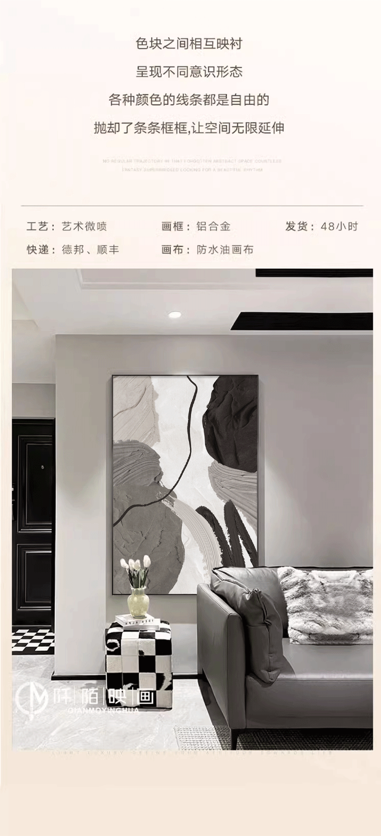 | 产品名称 : | 黑白极简艺术客厅装饰画抽象肌理沙发背景墙落地画高级感玄关挂画 |