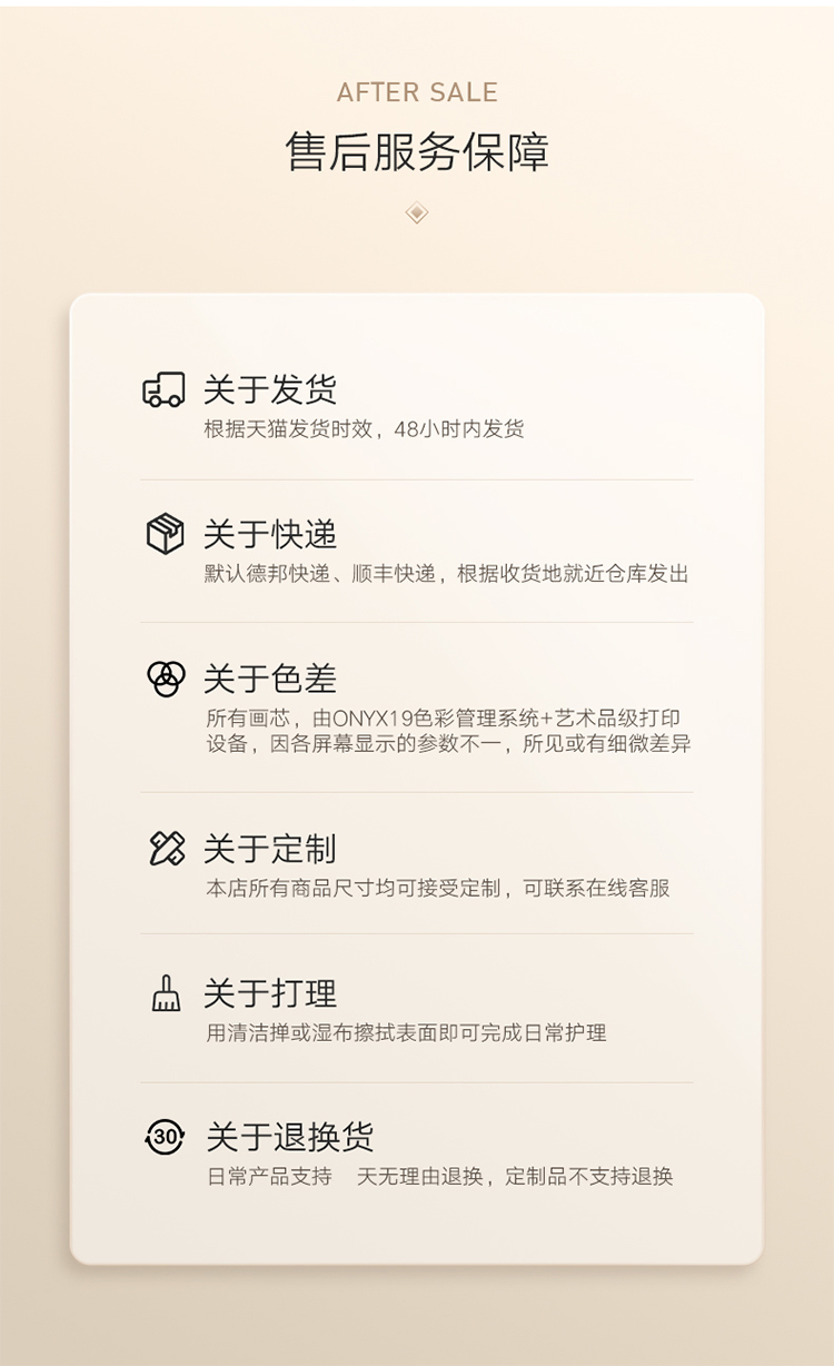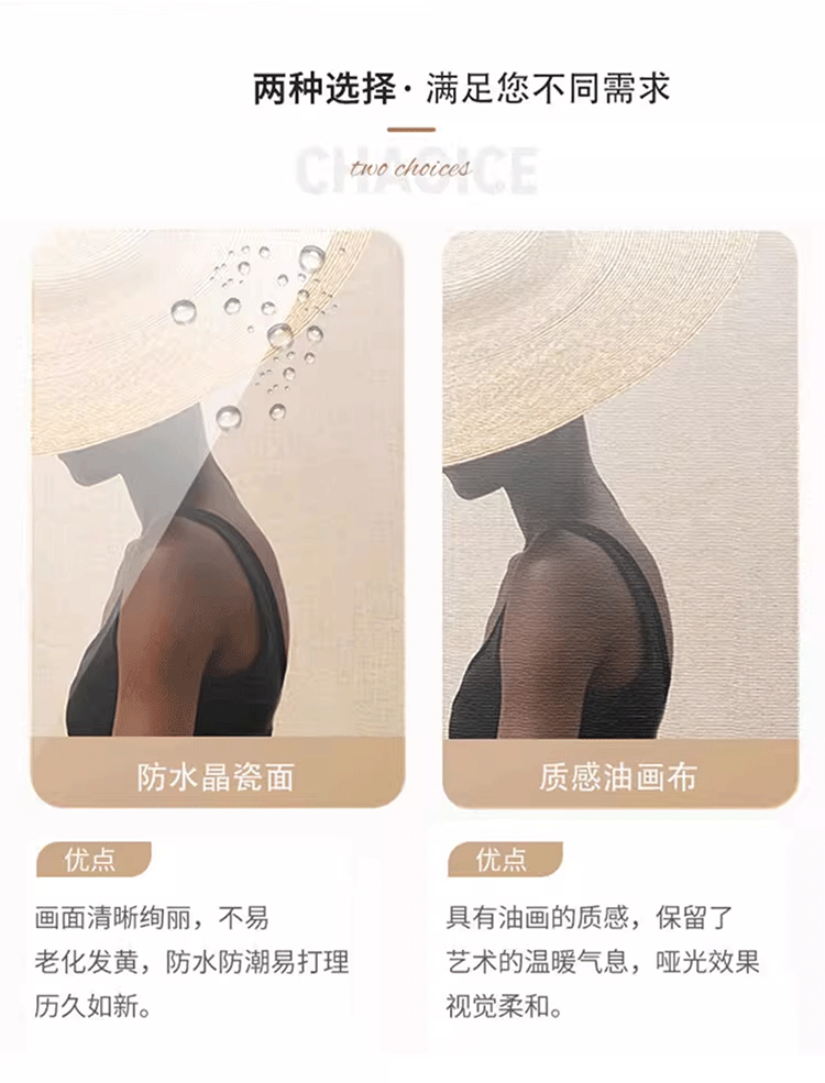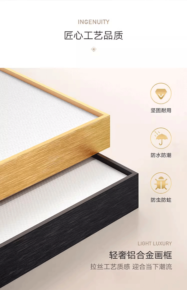 | 外框类型: | 纹理油画布画面【油画布画面+PS高分子边框】,纹理油画布画面【油画布画面+铝合金边框】,进口高透晶瓷画面【晶瓷画面+铝合金边框】 |