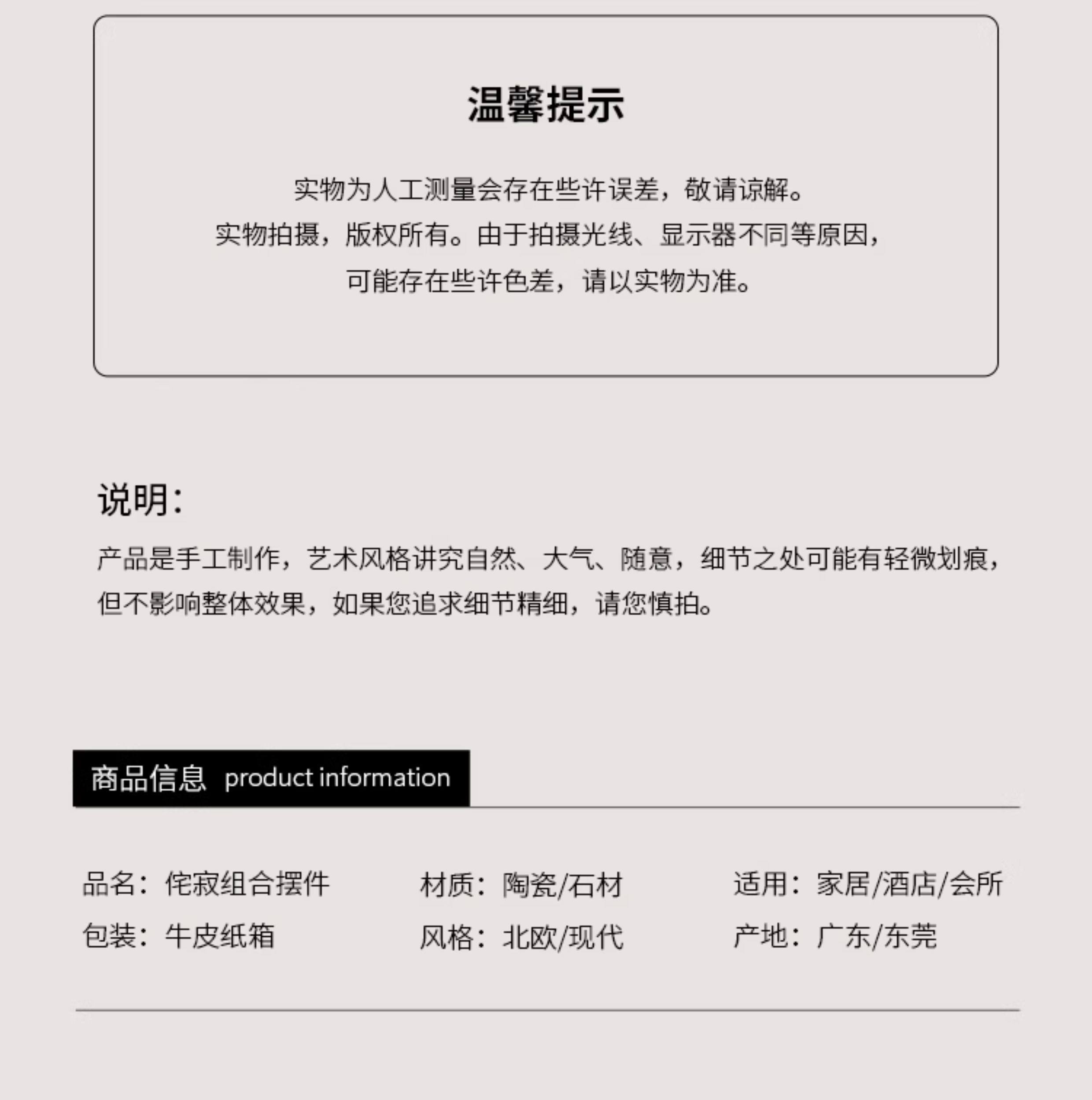 | 颜色分类: | 【全案软装搭配设计】 大组合【素悠境】 小组合【悠远】 小组合【宁静】 小组合【静谧】 大组合【萬和】 小组合【琅嬛】 小组合【瑰夏】 小组合【素璞】 大组合【寂趣】 小组合【古镜】 小组合【大地】 小组合【逸然】 大组合【寻漫】 小组合【故里】 小组合【陈年】 小组合【启皓】 锈迹瓶矮款 锈迹瓶高款 小丁桶茶壶 《谷物》杂志 饰品盒小号 饰品盒大号 复古留声机 黄洞石几何 黑色花瓶 炽热金装饰画 动感线条装饰画 马赛克蝴蝶瓶 大海螺 白珊瑚 宋韵提花盒 黑金水滴瓶 黑金几何摆件 三足碟 松鹤延年 皮革首饰盒小号 皮革首饰盒大号 水磨石纹书挡 磨砂玻璃花器 恐龙化石摆件 梵高书籍 木质耳机摆件 异形花器 黄铜石托盘 石来运转 锈迹瓷瓶 做旧陶瓷壶瓶 水磨石纹人物 米色扁口花器 大地色扁口花器 石头孔状书靠A 石头孔状书靠B 侘寂装饰画 圈纹花器一对 陶瓷三足果盘 山字陶瓷瓶 小台灯 托盘组合 贝壳花瓣花瓶 大地色花器一对 复古流釉花器矮款 复古流釉花器高款 不规则圆球 复古双耳瓶 玻璃双耳瓶 层叠瓷器一对 侘寂花瓶小 侘寂花瓶大 环扣魔方 图腾柱小 图腾柱大 铁锈迹瓷瓶 木化石摆件 几何柱三件套 复古瓷瓶 爱因斯坦手稿画30X30 同心圆瓶 斑点瓶 双耳瓷瓶 碳化瓷器 书捆 |