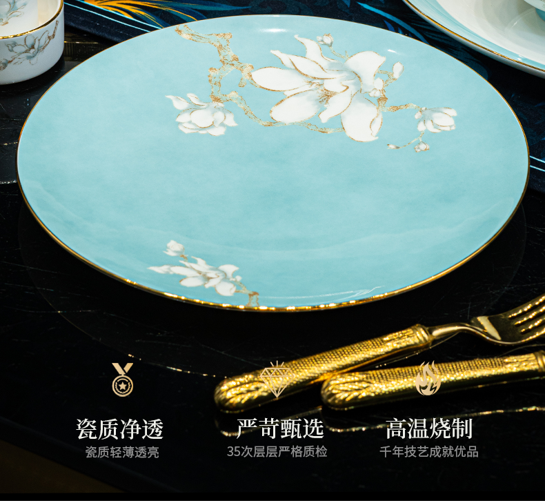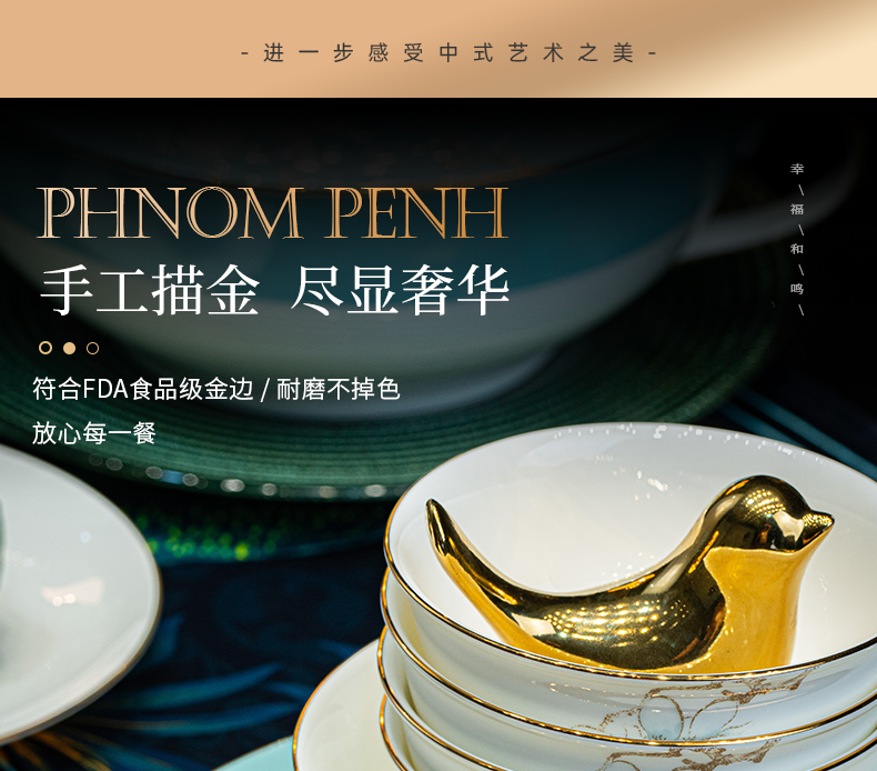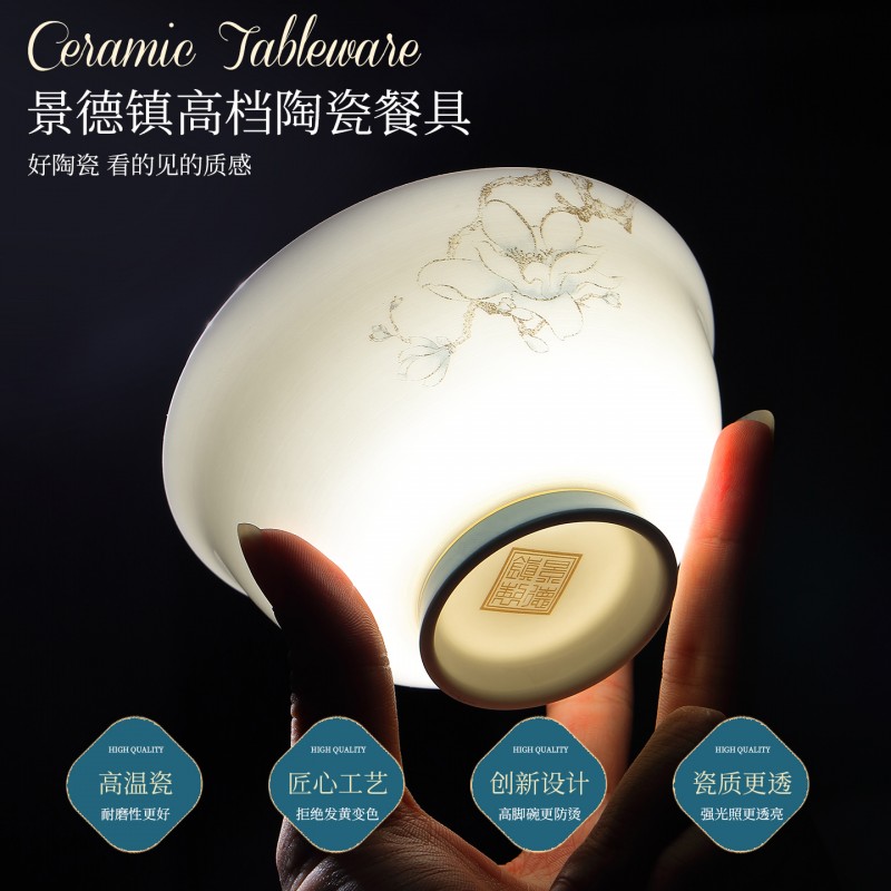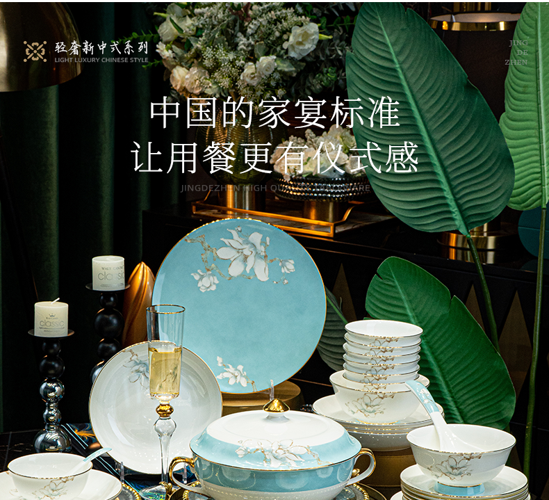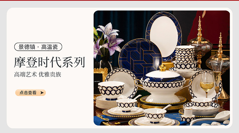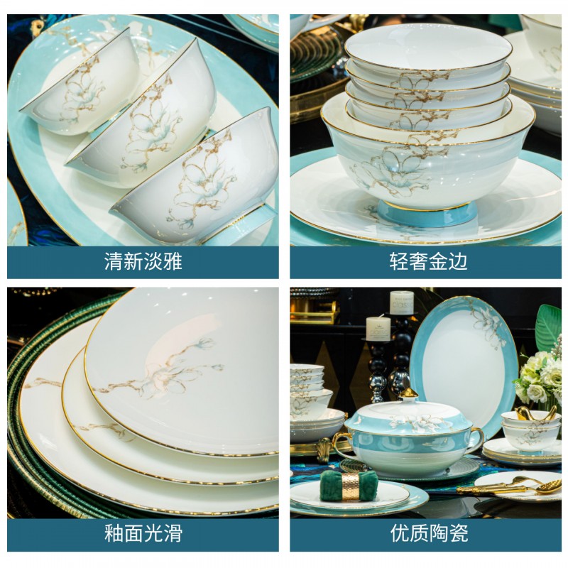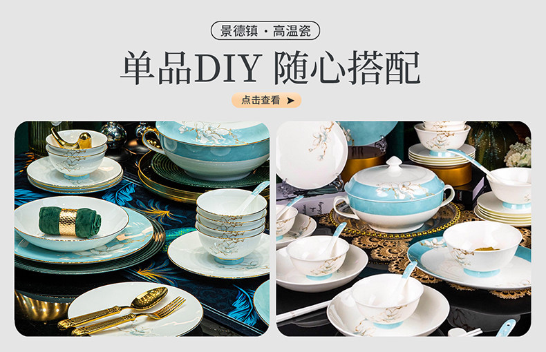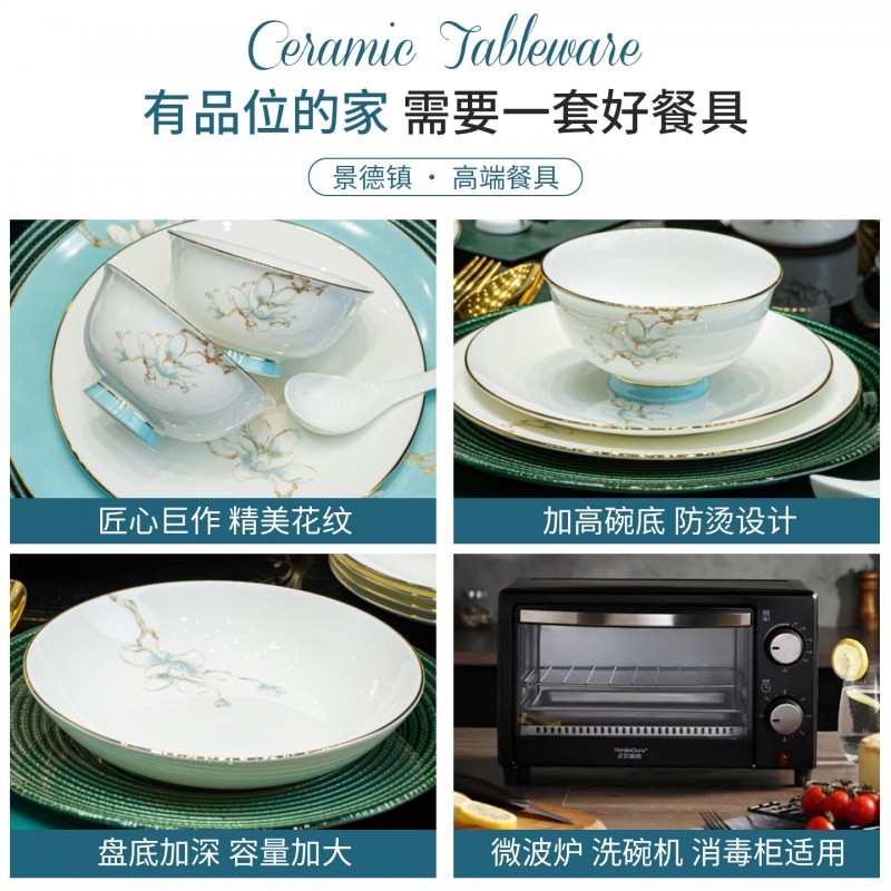 | 产品名称 : | 景德镇餐具套装新款骨瓷碗碟套装家用中式轻奢餐具乔迁碗盘陶瓷 |