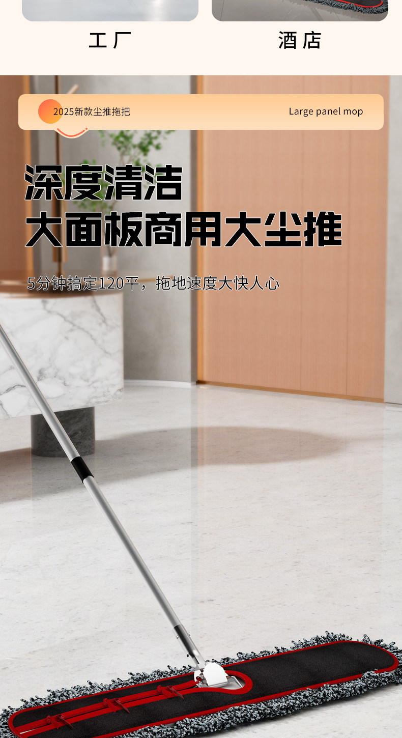 | 产品名称 : | 大号尘推平板拖把酒店排拖保洁工厂家用一拖净懒人瓷砖地地板拖布 |