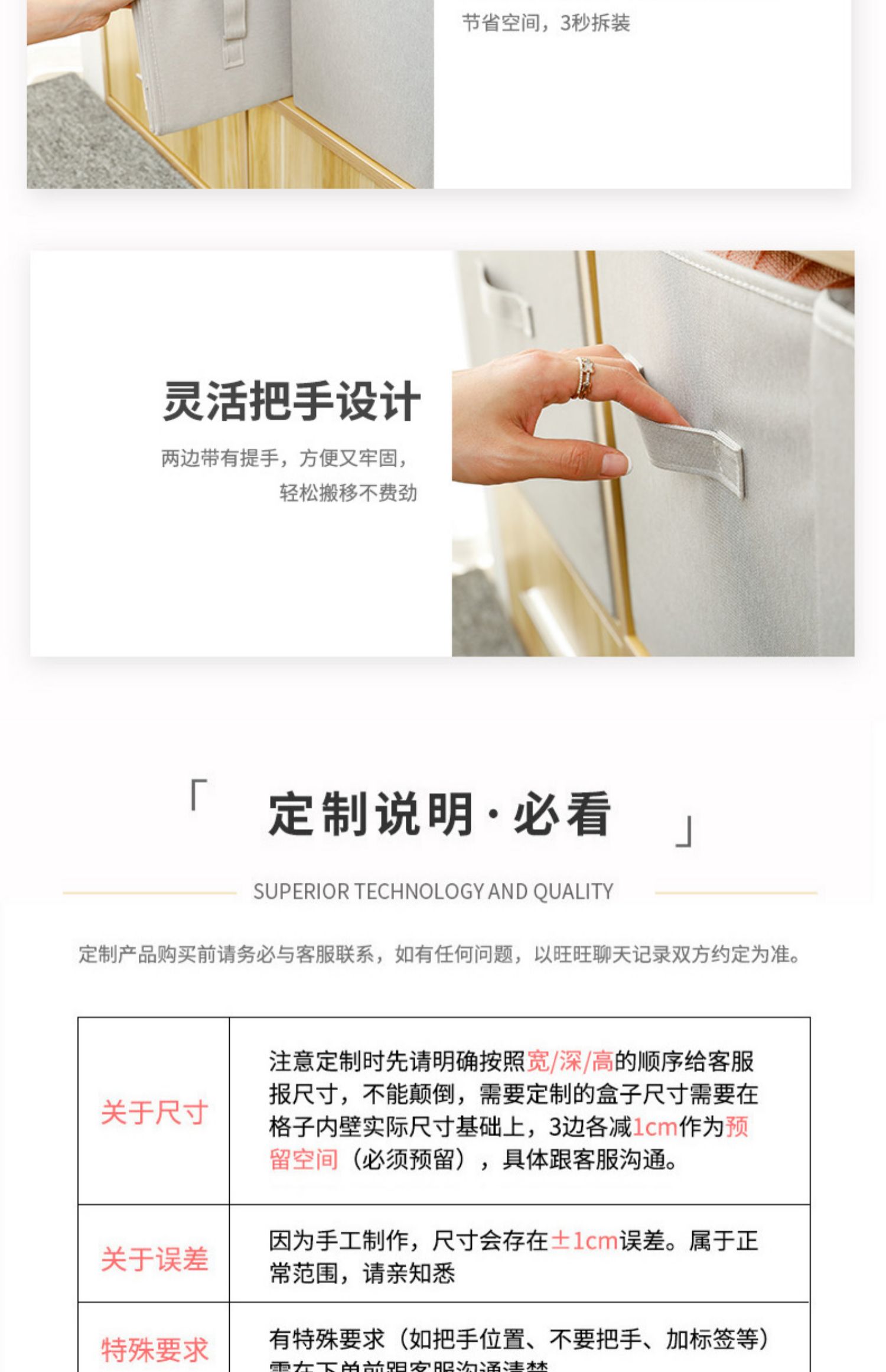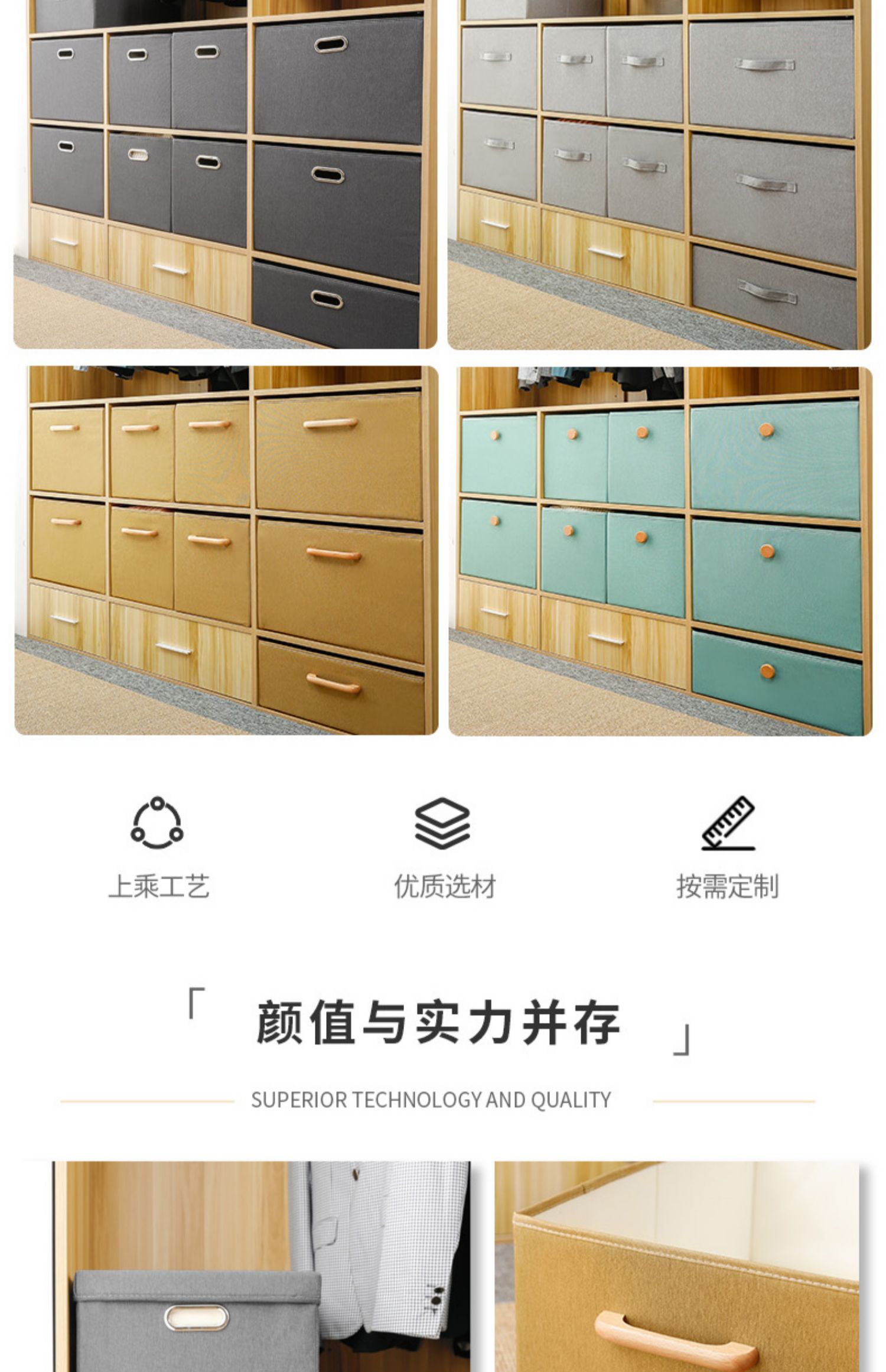 | 产品名称 : | 定制尺寸收纳箱抽屉式布艺储物盒订做衣物收纳筐衣柜内收纳盒定做 |