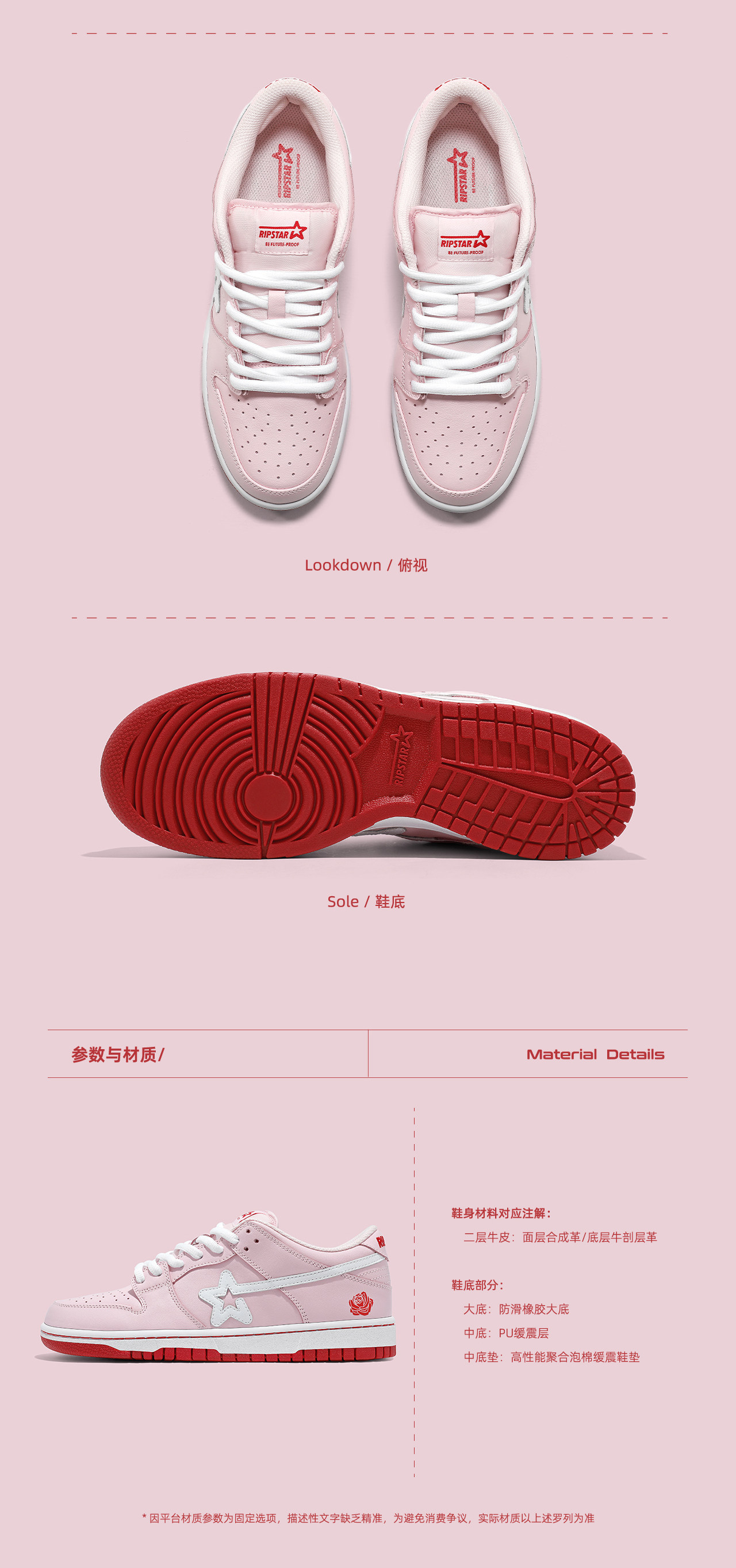 | 产品名称 : | RIPSTAR/爆炸星粉色情侣板鞋女秋冬季新款运动休闲鞋【粉玫瑰】 |