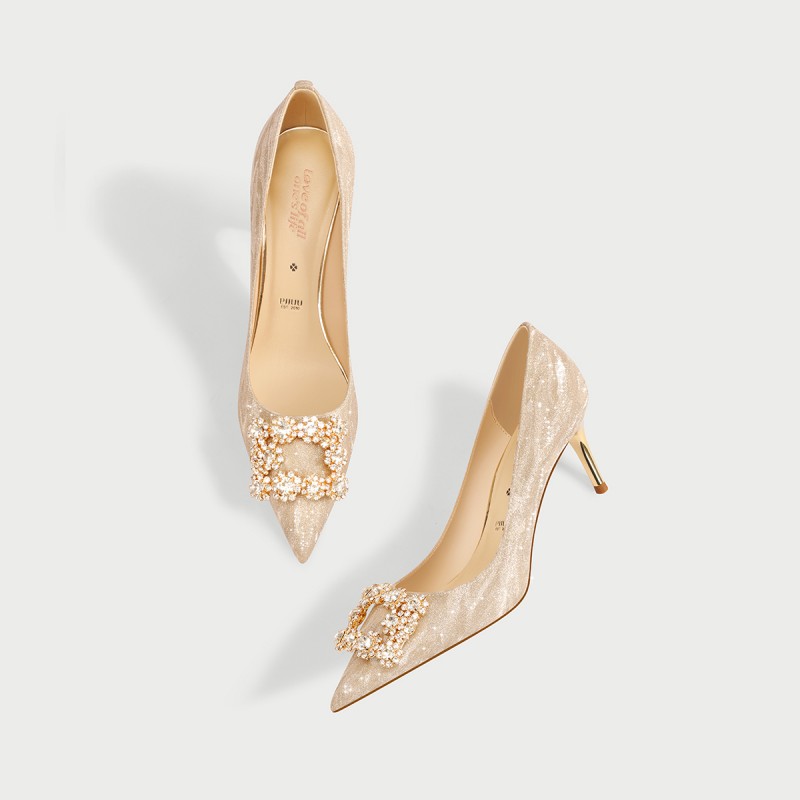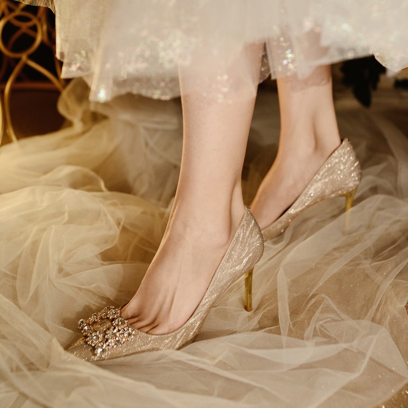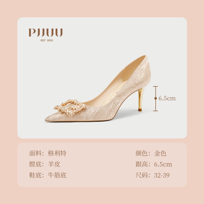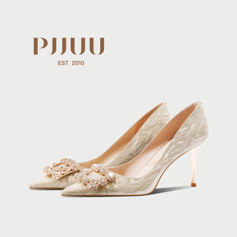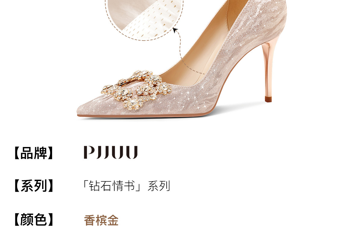 | 产品名称 : | pjjuu 绝美不累脚婚鞋女订婚主婚纱新娘鞋香槟色高跟鞋禾秀两穿金 |