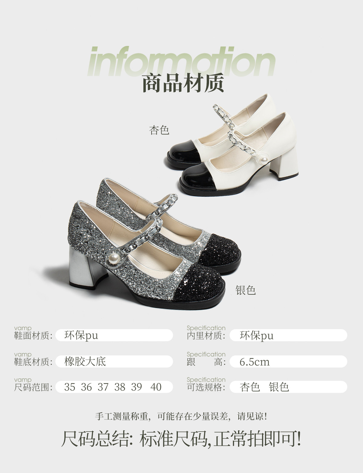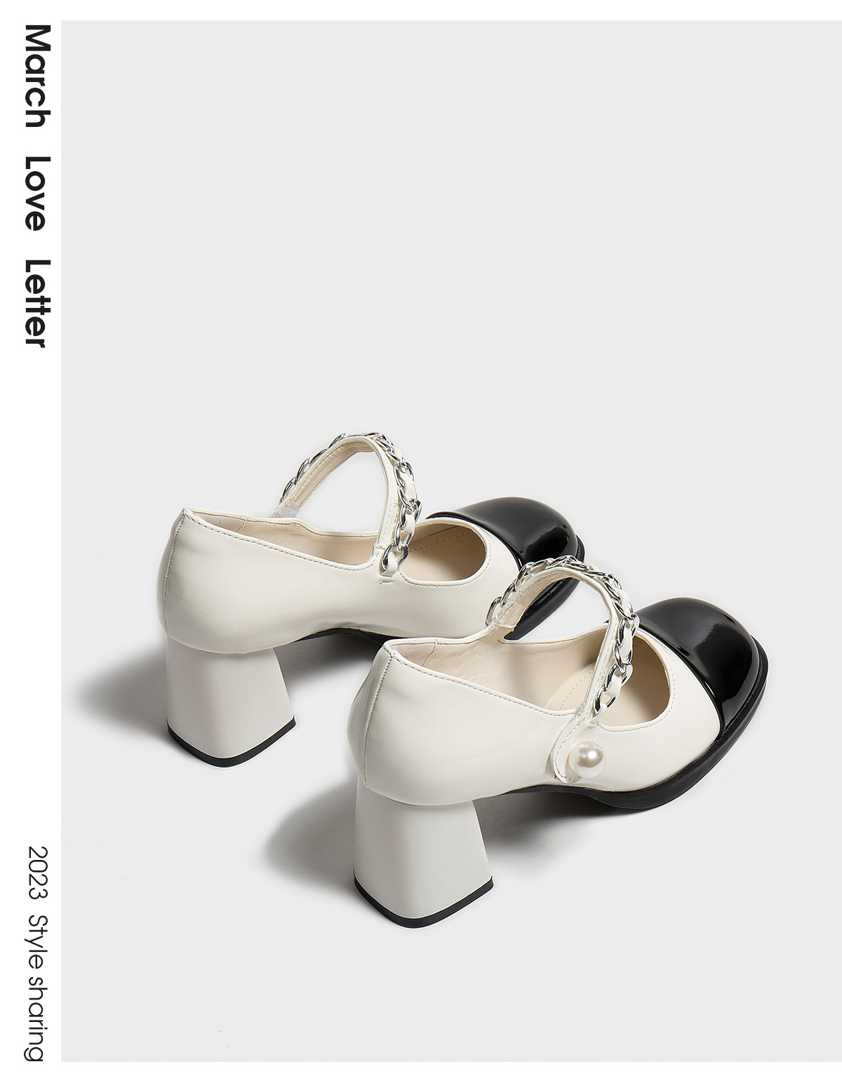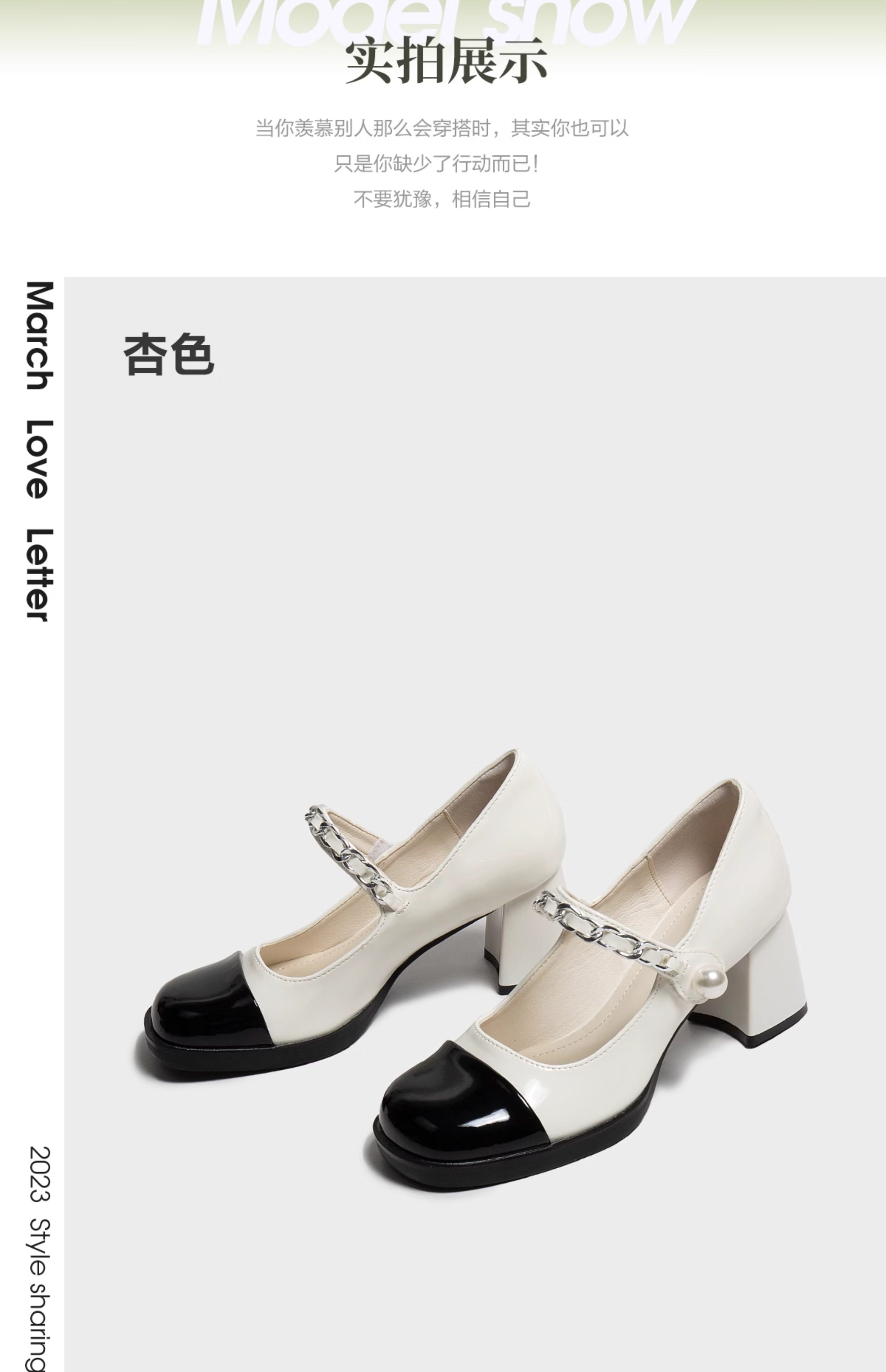 | 产品名称 : | 【三月情书】小香风法式玛丽珍小皮鞋女黑白拼色粗跟单鞋高跟鞋 |