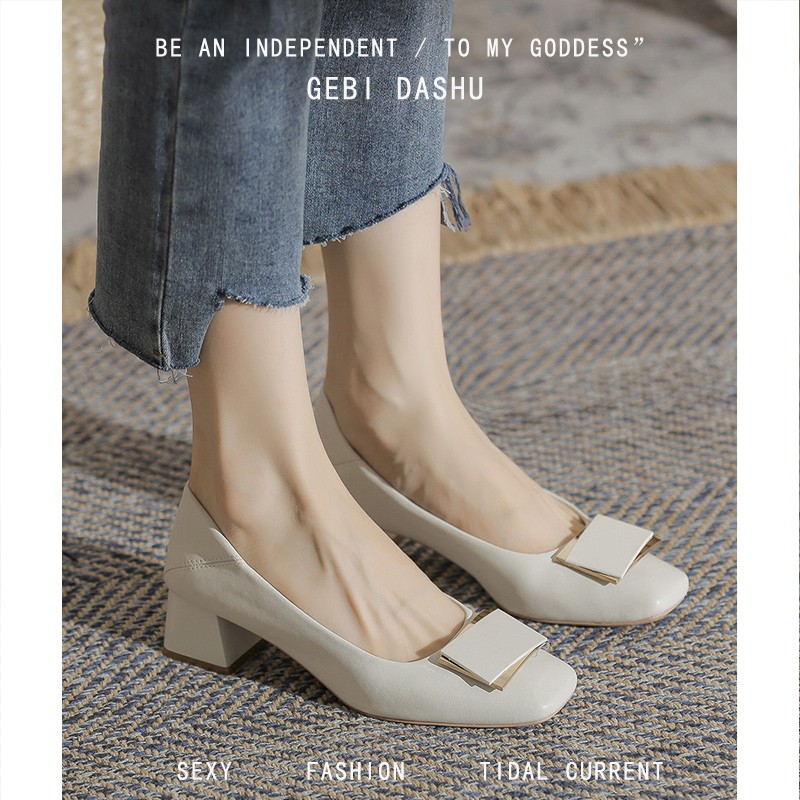 | 产品名称 : | 羊皮粗跟单鞋女2025新款百搭妈妈鞋中跟浅口瓢鞋职业法式高跟鞋子 |