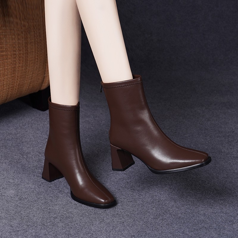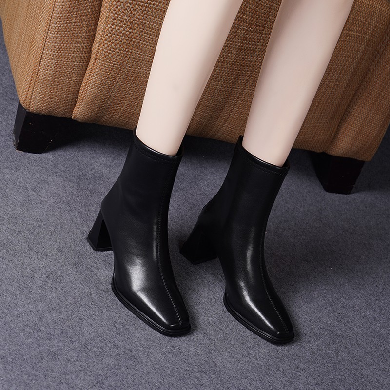 | 产品名称 : | 2025新款秋冬季真皮短靴女粗跟高跟羊皮鞋春秋方头瘦瘦靴加绒女鞋 |