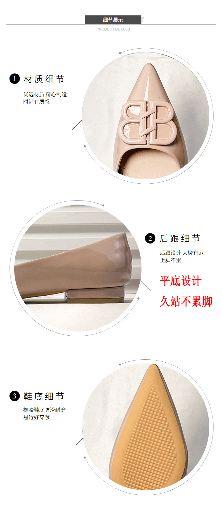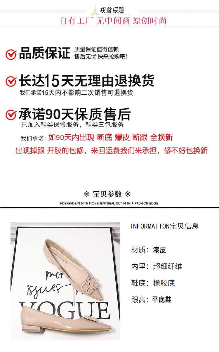 | 产品名称 : | 法式裸粉色漆皮浅口气质名媛尖头平底鞋女2025年新款韩版百搭单鞋 |