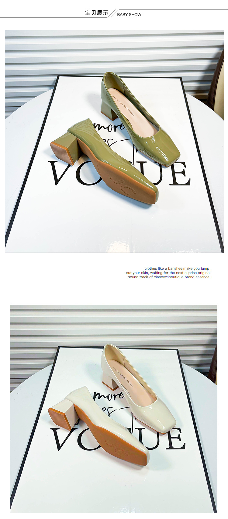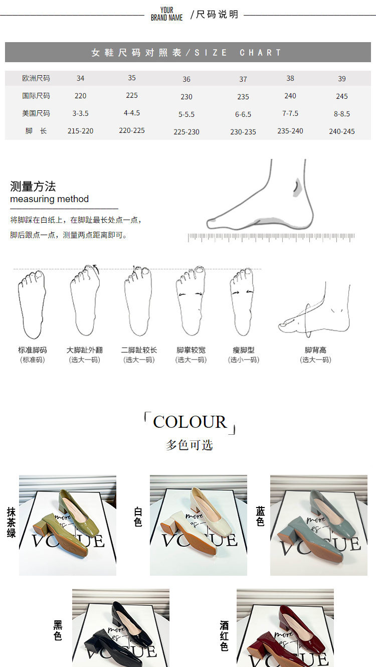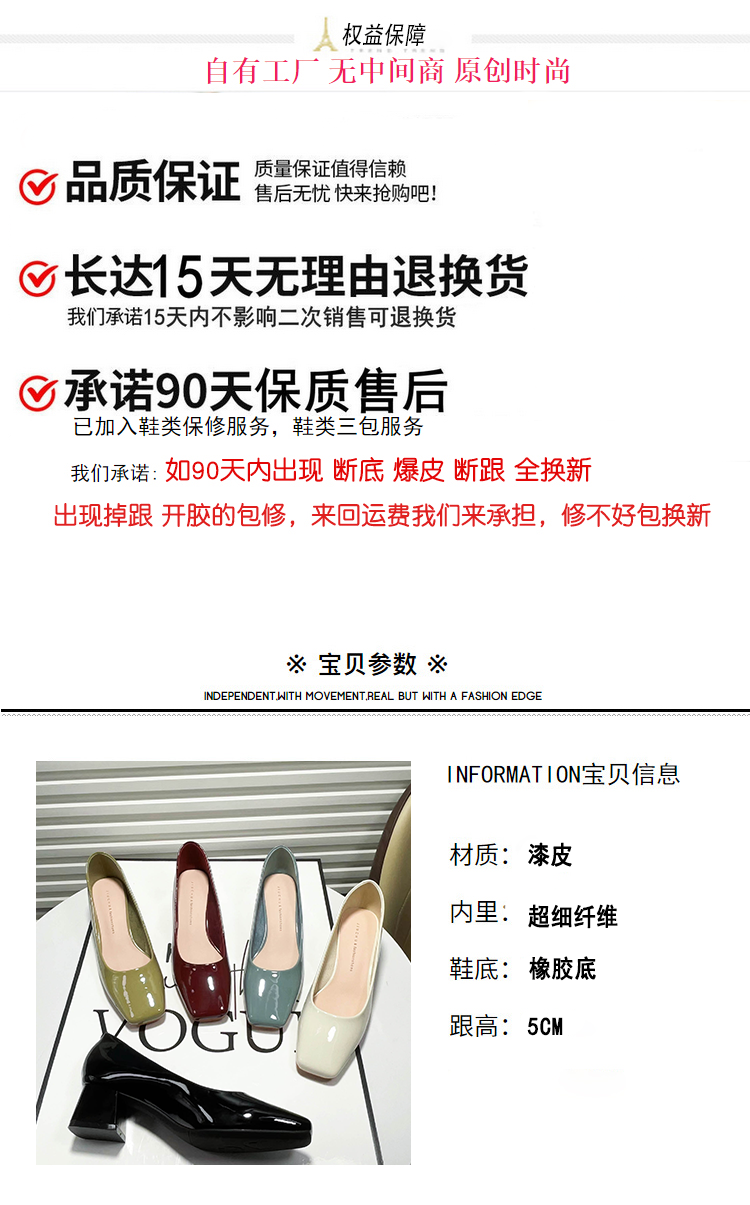 | 产品名称 : | 方头浅口粗跟单鞋女2025年新款春夏季气质职业百搭绿色高跟鞋中跟 |