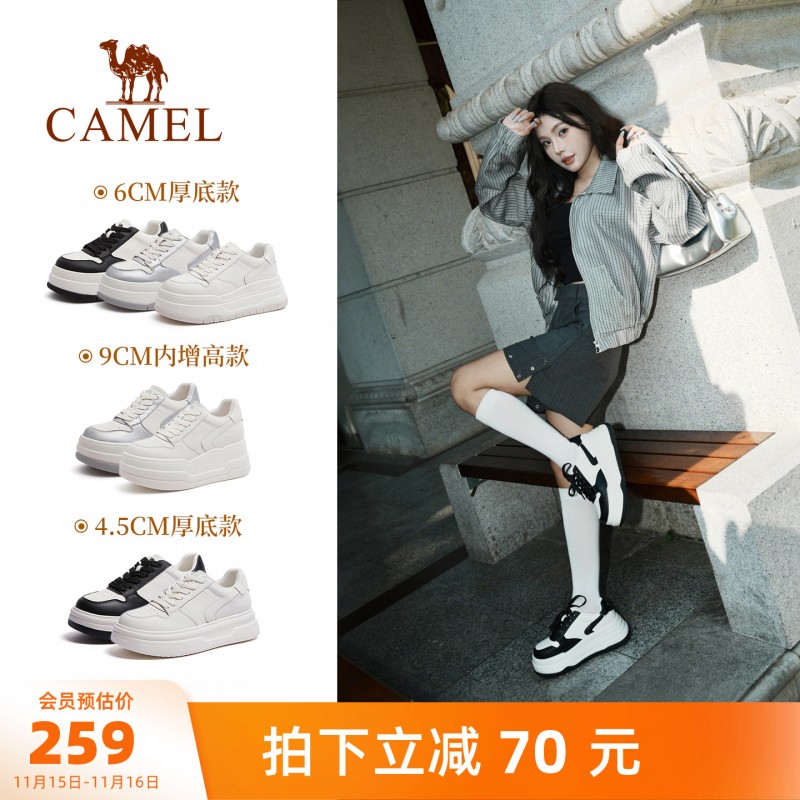 骆驼女鞋厚底千层鞋2025秋季新款休闲运动增高简约百搭板鞋小...