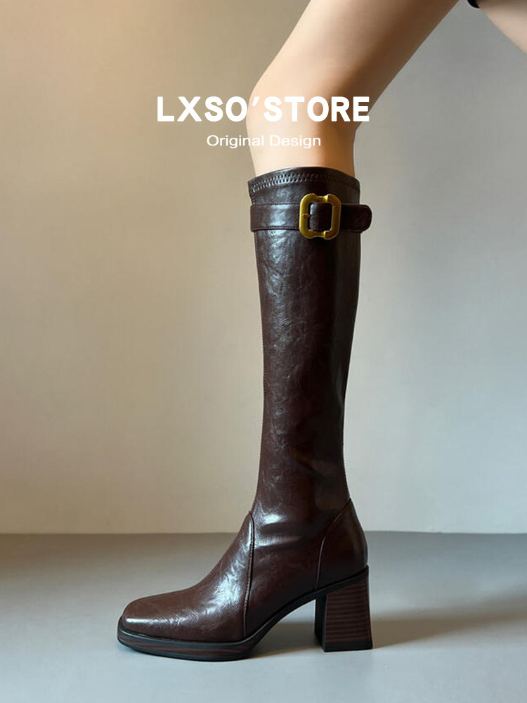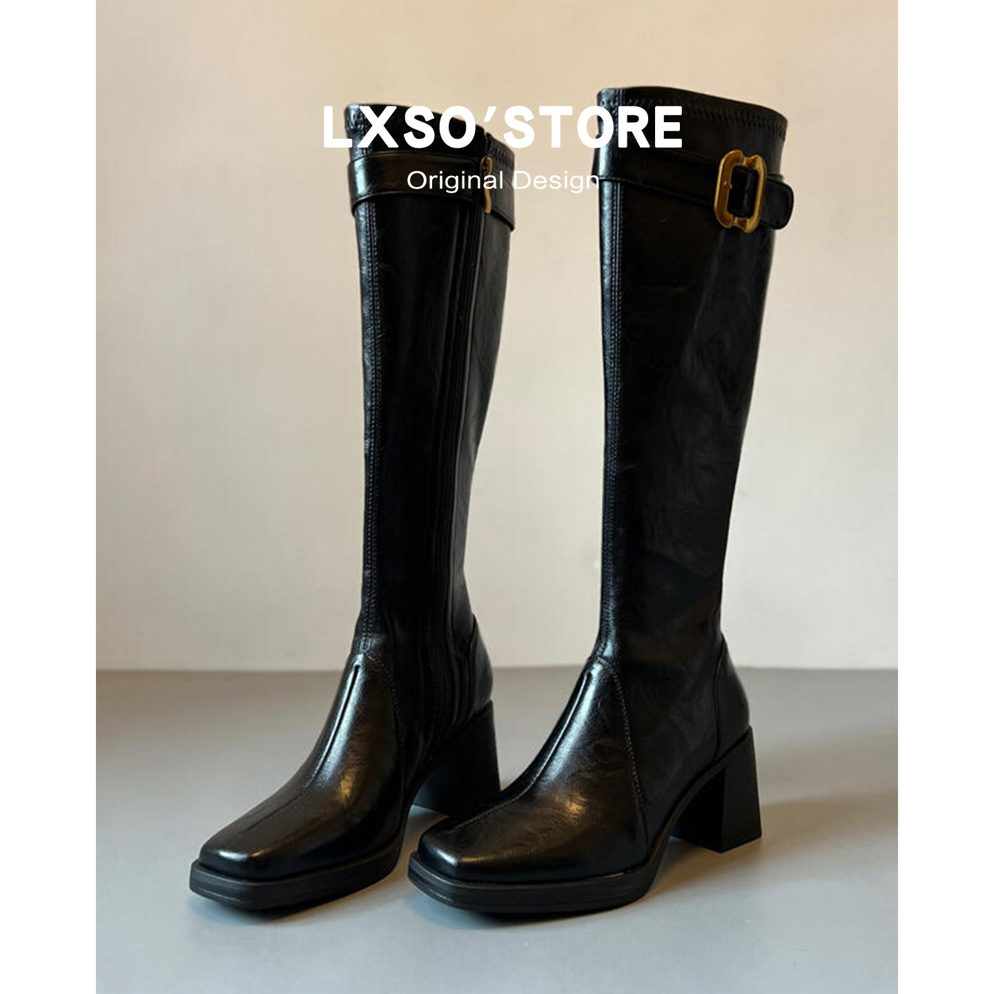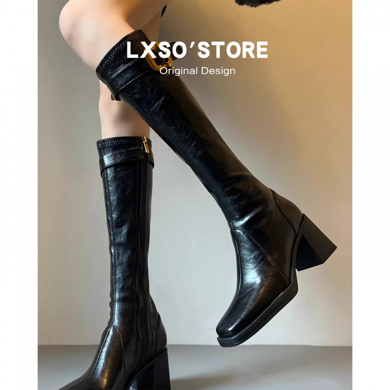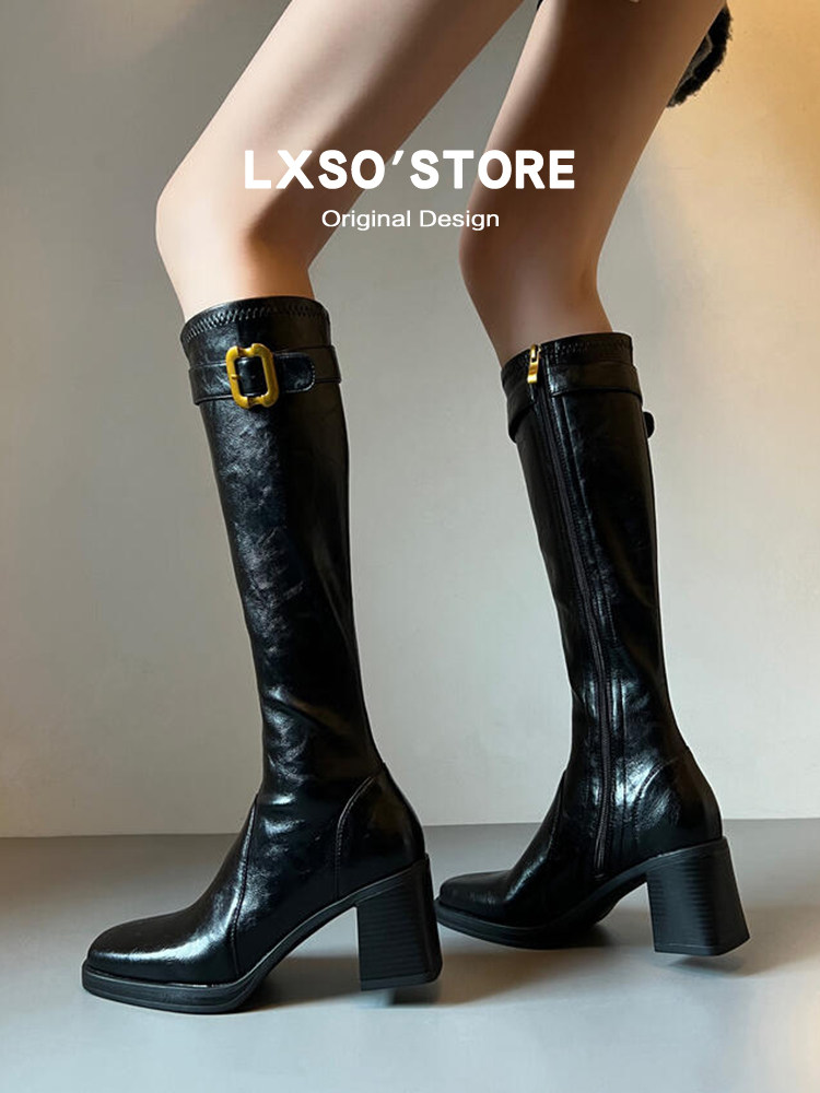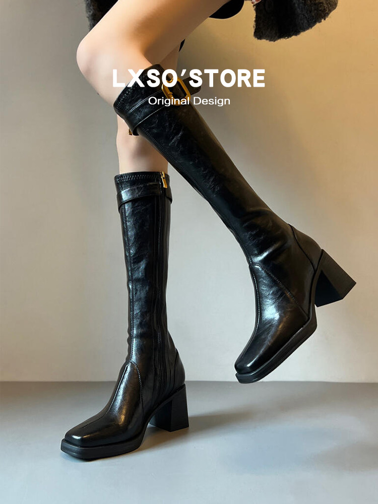 | 产品名称 : | 真皮高跟长筒靴女秋冬新款加绒皮带扣方头显瘦瘦靴长靴子女骑士靴 |