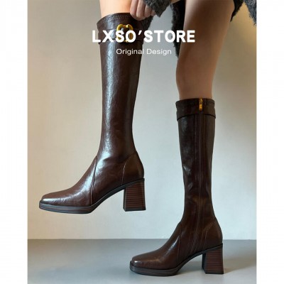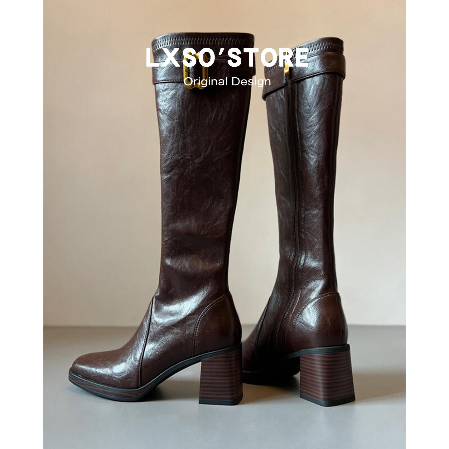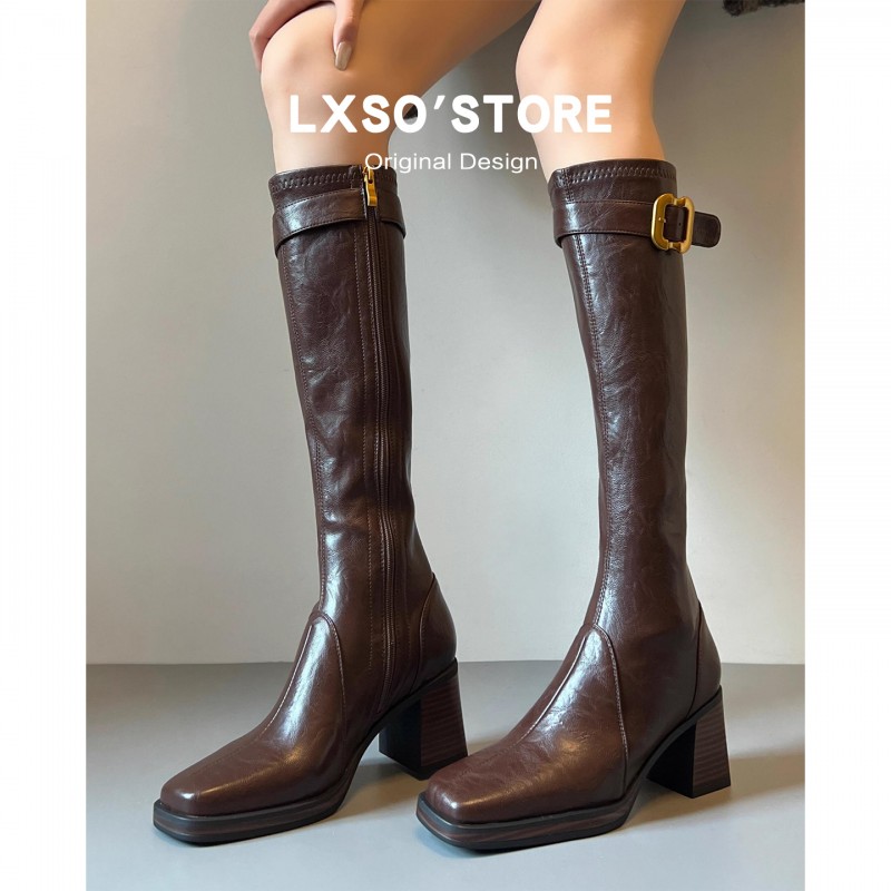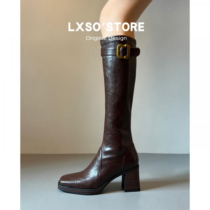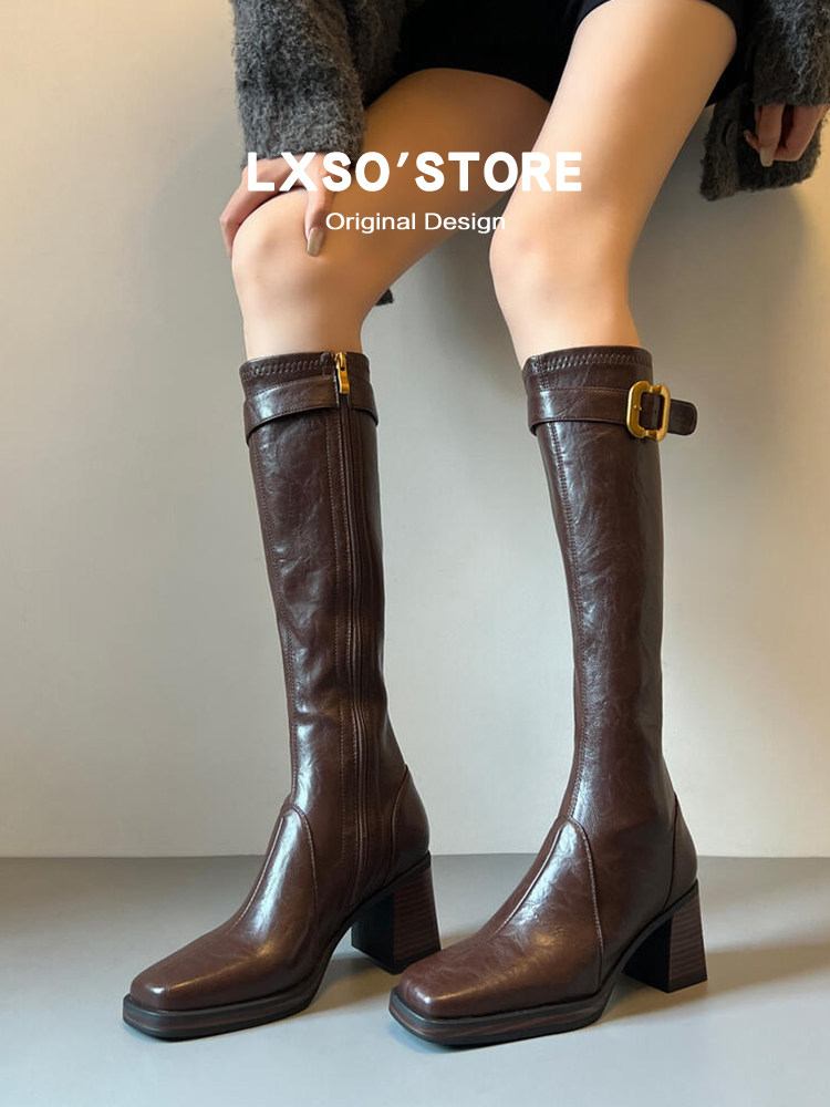 | 产品名称 : | 真皮高跟长筒靴女秋冬新款加绒皮带扣方头显瘦瘦靴长靴子女骑士靴 |