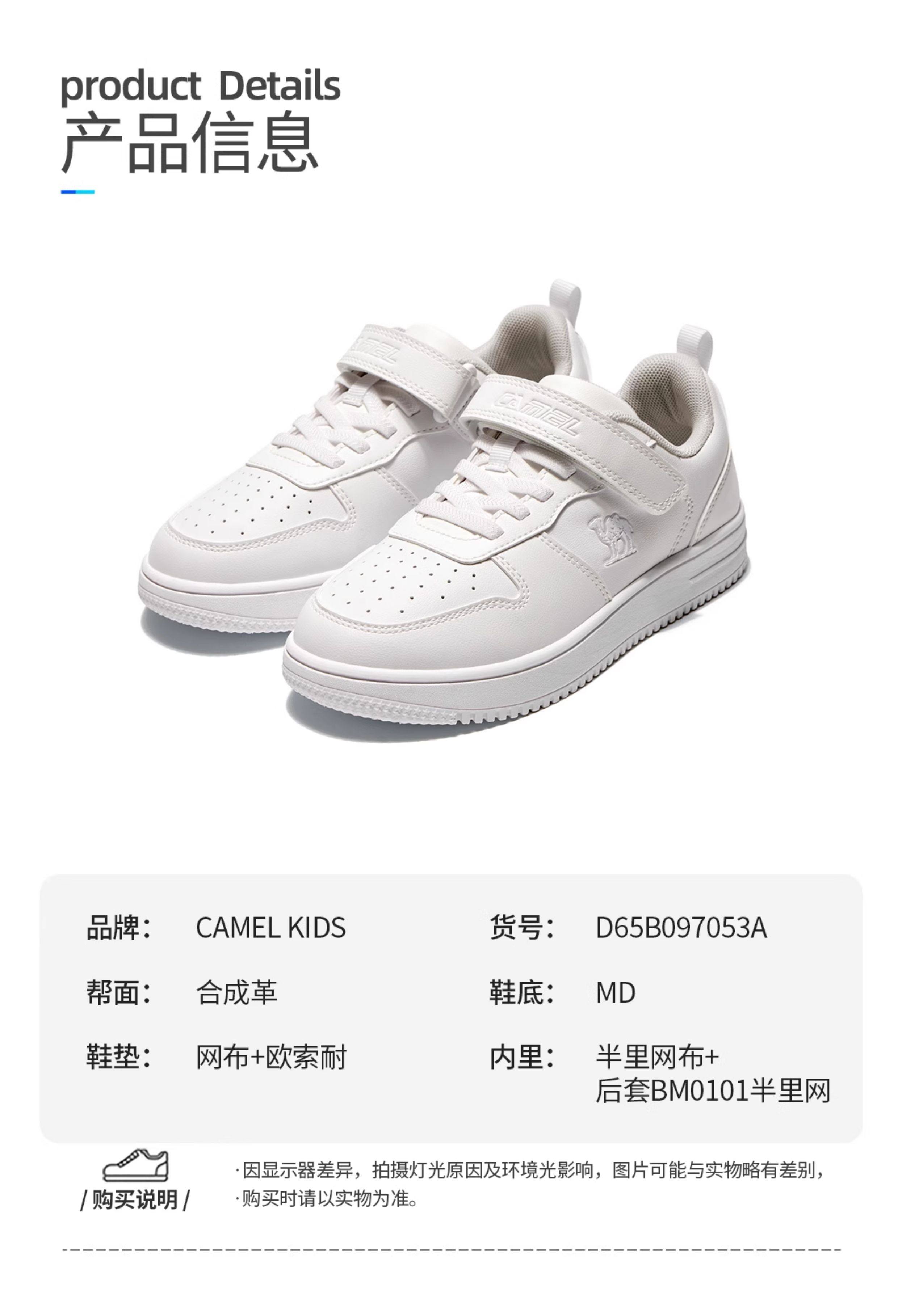 小骆驼童鞋儿童小白鞋2025新款防滑男女童白色运动鞋大童休闲...